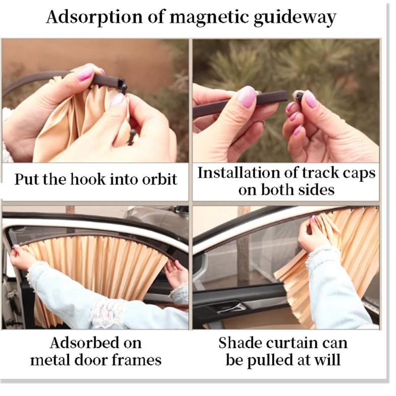 - Bộ rèm che nắng cho xe hơi có nam châm giúp cố định miếng che nắng vào phía bên trong mặt cửa kính, thật tiện lợi khi bạn hạ kính xe mà không phải