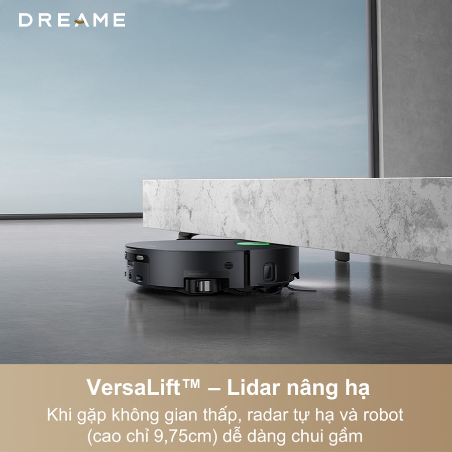 Robot hút bụi Dreame Aqua 10 Pro Track dễ dàng len lỏi vào các khu vực có độ cao hạn chế như gầm giường, gầm sofa hay dưới các vật dụng nội thất khác. Đó là nhờ vào hệ thống cảm biến nâng hạ VersaLift kết hợp công nghệ cảm biến DToF hiện đại.