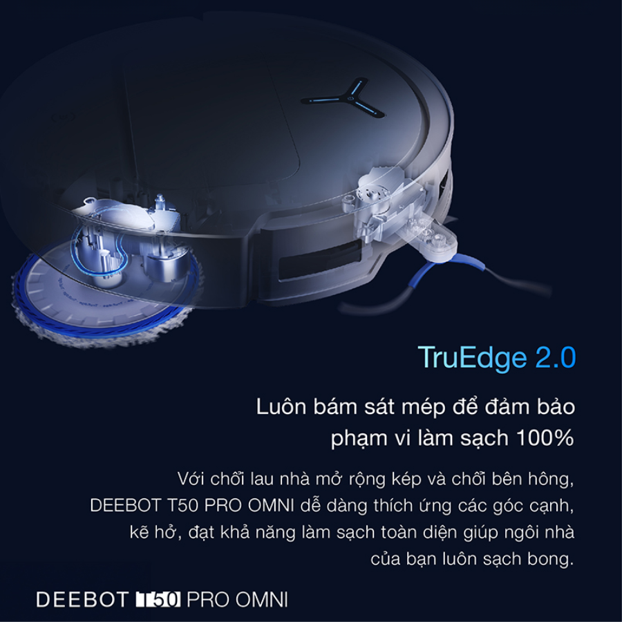 Robot hút bụi Ecovacs T30S Pro, Làm sạch viền, không bị rối. Tận hưởng sự đơn giản, yên bình và tối ưu không gian nhờ giải pháp làm sạch sáng tạo của Ecovacs T30S Pro.