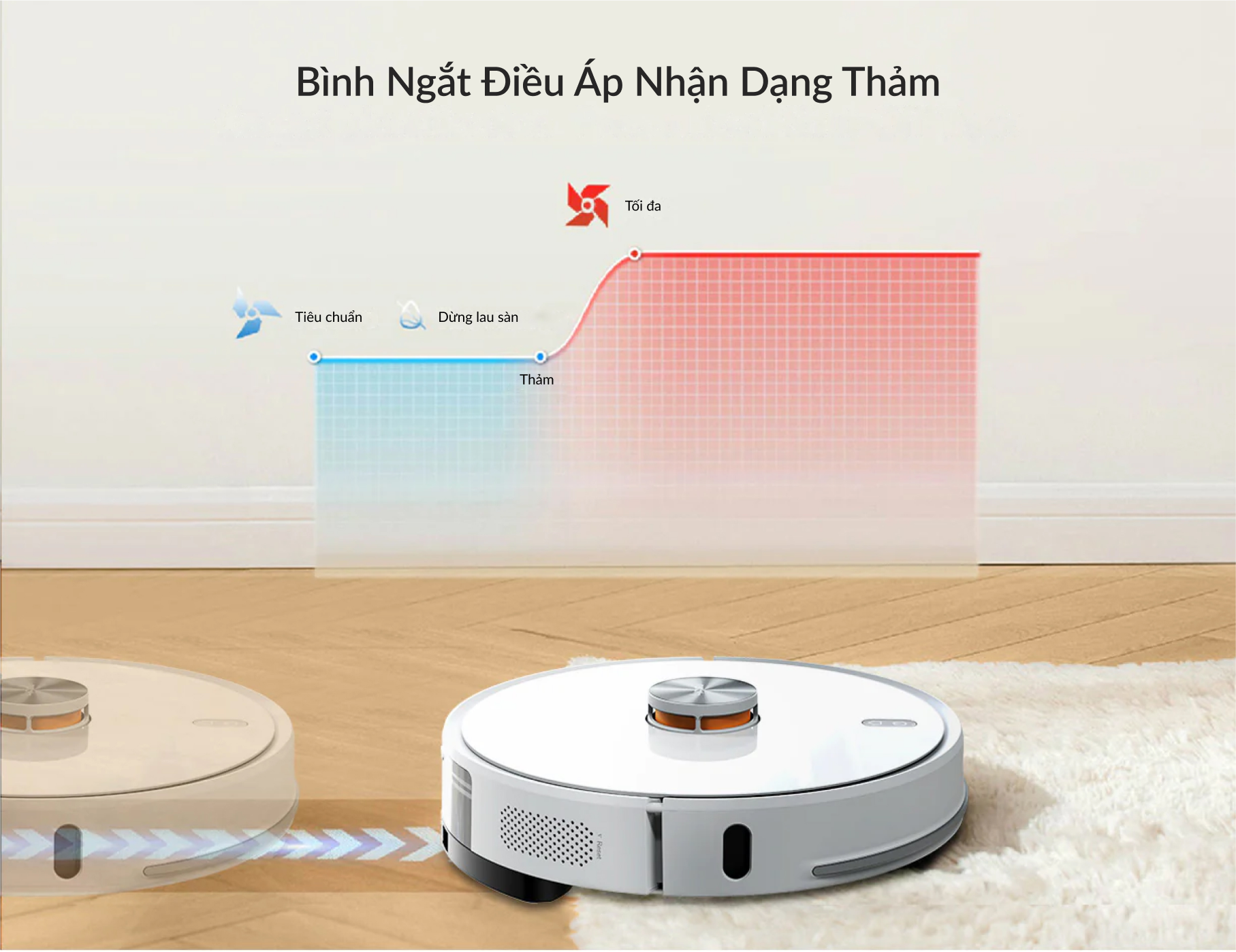 Ưu điểm của robot hút bụi lau nhà Dreame D20 - Sức mạnh vượt trội với lực hút Vormax 13.000Pa mạnh mẽ - Giải pháp làm sạch thảm ấn tượng, tự động điều chỉnh lực