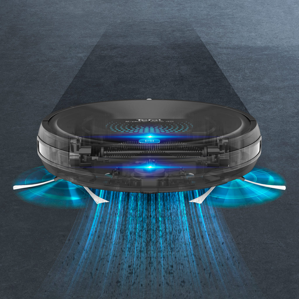 Giới thiệu sản phẩm Máy hút bụi Tefal Robot RG8275WH- Đen - Máy có thể hút liên tục lên đến 150 phút - Tự động sạc nhờ bộ sạc kèm theo - Cảm biến