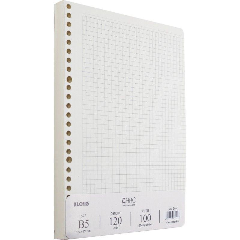Ruột sổ còng Caro KLONG B5 120/76 - 100 tờ (200 trang); MS: 546 - Kích cỡ ô caro nét liền: 5x5mm - Định lượng: 120 g/m2 - Độ trắng kem: 76% ISO - Số trang: 100 tờ (200 trang) - Kích ...