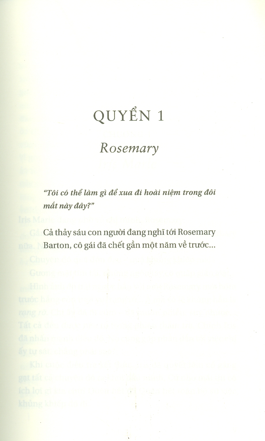 Sáu người ngồi vào một bàn tiệc được bày biện cho bảy người tham dự. Trước chỗ ngồi để trống là một nhành hương thảo – Rosemary – “loài hoa tỏ niềm tưởng nhớ”. Thật là một gợi nhắc lạ lùng, vì chẳng ai trong số họ quên được cái đêm kinh hoàng của một năm về trước, khi Rosemary Barton gục chết trên chính cái bàn này, gương mặt xinh đẹp méo mó vì đau đớn. Như cái tên, Rosemary không thể bị lãng quên. Cô luôn khơi gợi cảm xúc mãnh liệt ở mọi người, và có khi là cảm xúc đủ mạnh để họ xuống tay hạ sát cô Đêm nay, bi kịch có tái diễn? Giữa một cái bẫy, mấy tay bồi bàn, và những gói độc dược giấu trong túi xách, làm sao Đại tá Race phá giải vụ án mạng đáng lẽ không thể nào xảy ra được nhưng đã xảy ra? Một lần nữa, Agatha Christie lại chứng tỏ sức hấp dẫn đến từ sự am hiểu tâm lý vô song và một bí ẩn vừa lắt léo vừa giản đơn đến tài tình. “Màn kết sẽ khiến chín trên mười người đọc phải sửng sốt.” New York Times.