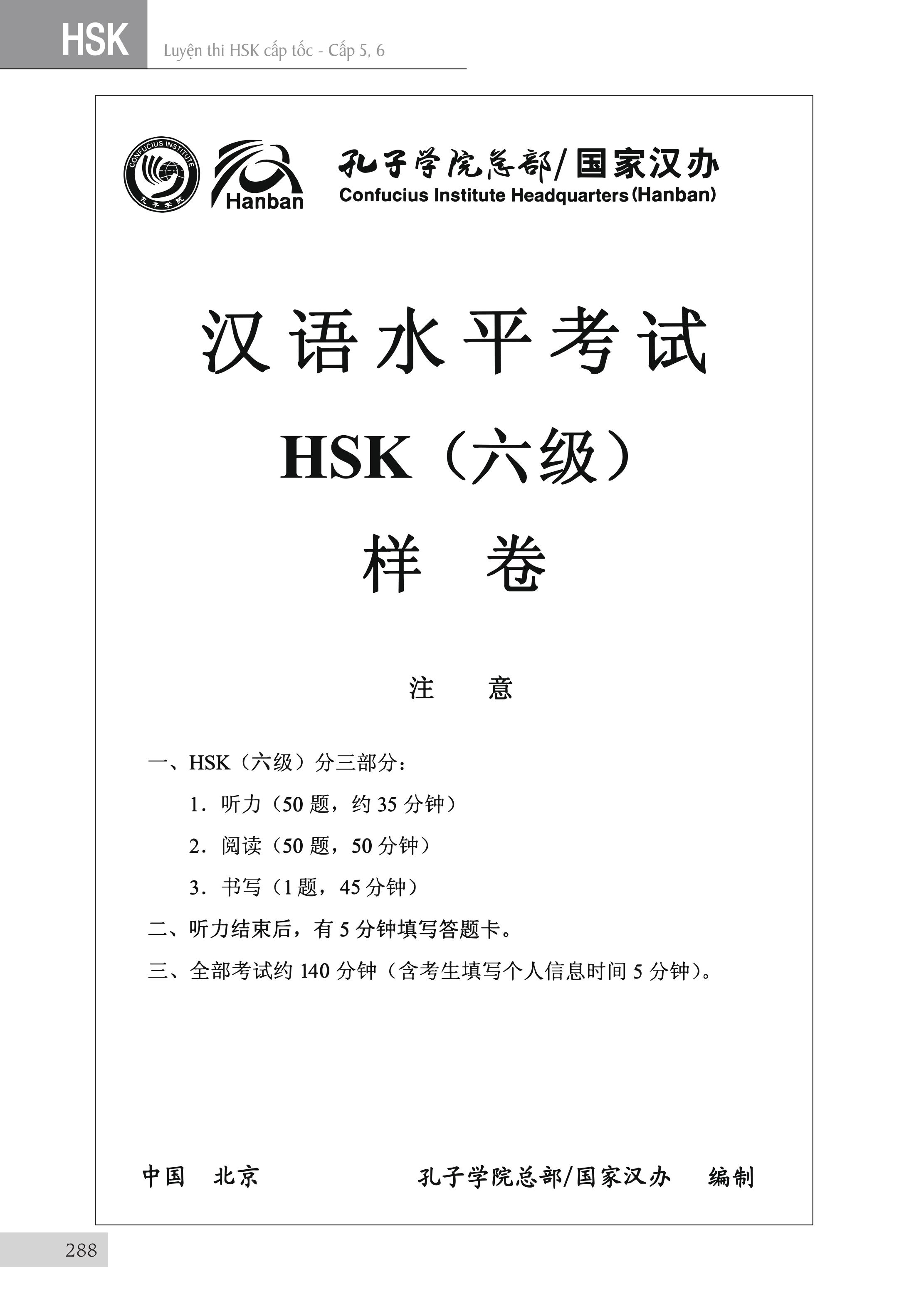Để đạt mục tiêu “cấp tốc” đã giải thích ở trên, chúng tôi dựa vào Đề cương và Đề thi mẫu của HANBAN, cũng như những tài liệu luyện thi HSK của Trung Quốc để biên soạn bộ sách này. Từng phần của bài thi được giới thiệu qua một cấu trúc thống nhất như sau: