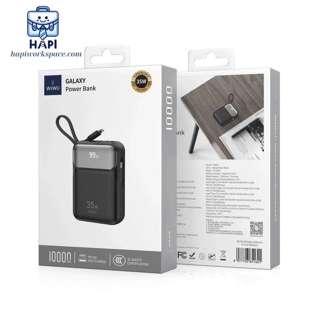 THÔNG TIN CƠ BẢN - Thương hiệu: WiWU - Model: Wi-P024 10.000 mAh - Năm sản xuất: 2025 - Loại sạc: Sạc dự phòng tích hợp cáp - Kết nối: - Cáp tích