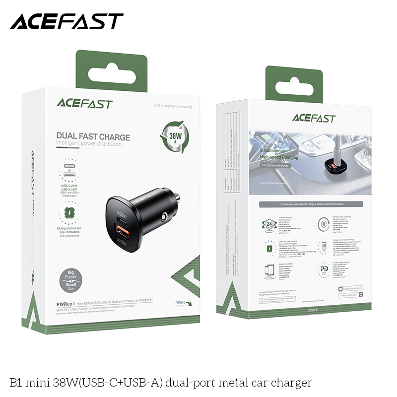 ✨Sạc ô tô Acefast 38W 2 cổng USB-C + USB-A - B1 Hàng chính hãng Acefast