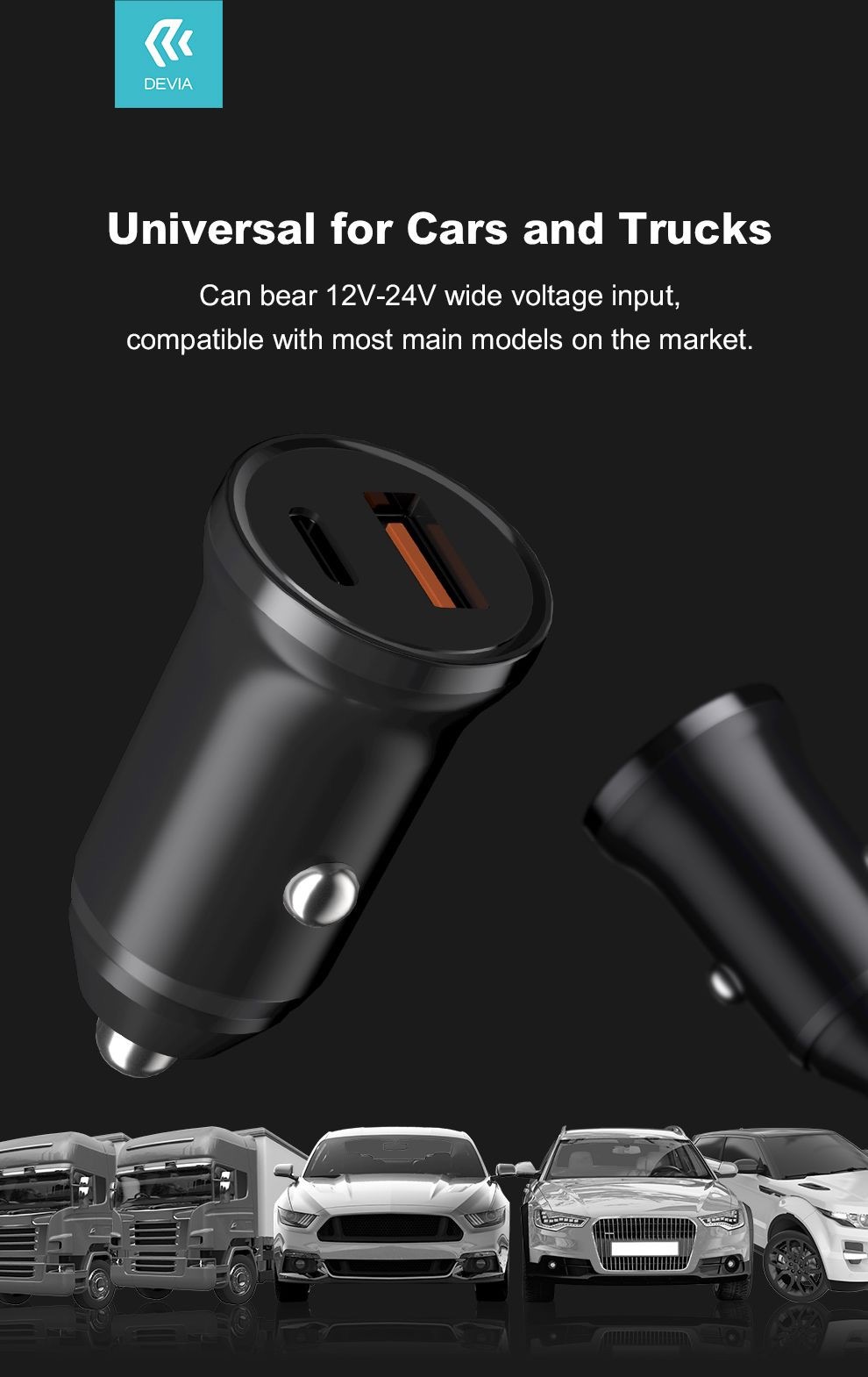 ✨Sạc trên xe hơi Devia Mini hỗ trợ sạc nhanh PD + QC (20W)- Hàng chính hãng