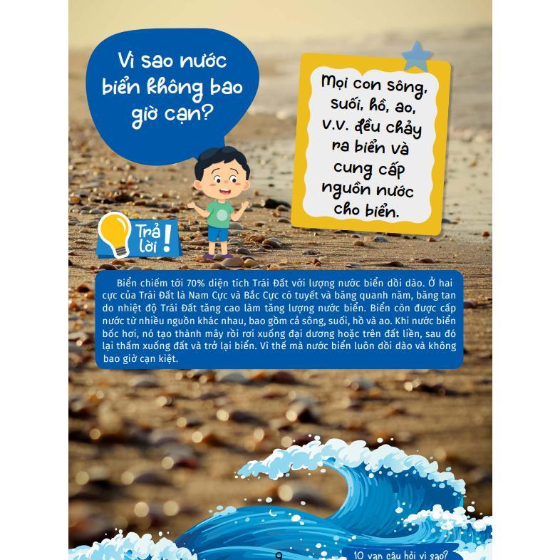 Tuổi thơ là khoảng thời gian đẹp nhất trong cuộc đời mỗi con người. Ở lứa tuổi này, trẻ luôn tràn trề hy vọng, cùng những ngây thơ trong sáng buổi ban đầu. Đứng trước thế giới với bao điều kỳ diệu mang trong mình sự tò mò, khát vọng tìm hiểu, câu nói thường thấy nhất ở trẻ là "Vì sao?" Để có thể trả lời chính xác câu hỏi của trẻ, không phải là việc đơn giản. Các nghiên cứu cho thấy, sự phát triển ở bộ não trẻ diễn ra nhanh nhất trong 13 năm đầu đời. Là một phụ huynh, khi không mang lại cho trẻ cơ hội suy nghĩ, tìm hiểu, có thể bạn sẽ phải hối tiếc! Thế giới ngày nay phát triển nhanh chóng, kho tàng kiến thức là vô hạn, luôn được đổi mới với tốc độ chóng mặt. Cũng xuất phát từ những suy nghĩ trên, chúng tôi đã thu thập rộng rãi, lựa chọn kĩ càng các câu hỏi mà các em nhỏ cảm thấy hứng thú để đưa ra bộ sách Mười vạn câu hỏi vì sao?, mang lại cho các em những câu trả lời theo từng chủ đề. Cuốn sách, với sự đóng góp của các chuyên gia khoa học thường thức giàu kinh nghiệm, sử dụng ngôn ngữ dễ hiểu, kết hợp những hình ảnh minh họa sinh động sẽ mang đến cho các em những kiến thức cơ bản, chứa đựng nội dung phong phú, xoay quanh nhiều chủ đề hấp dẫn: