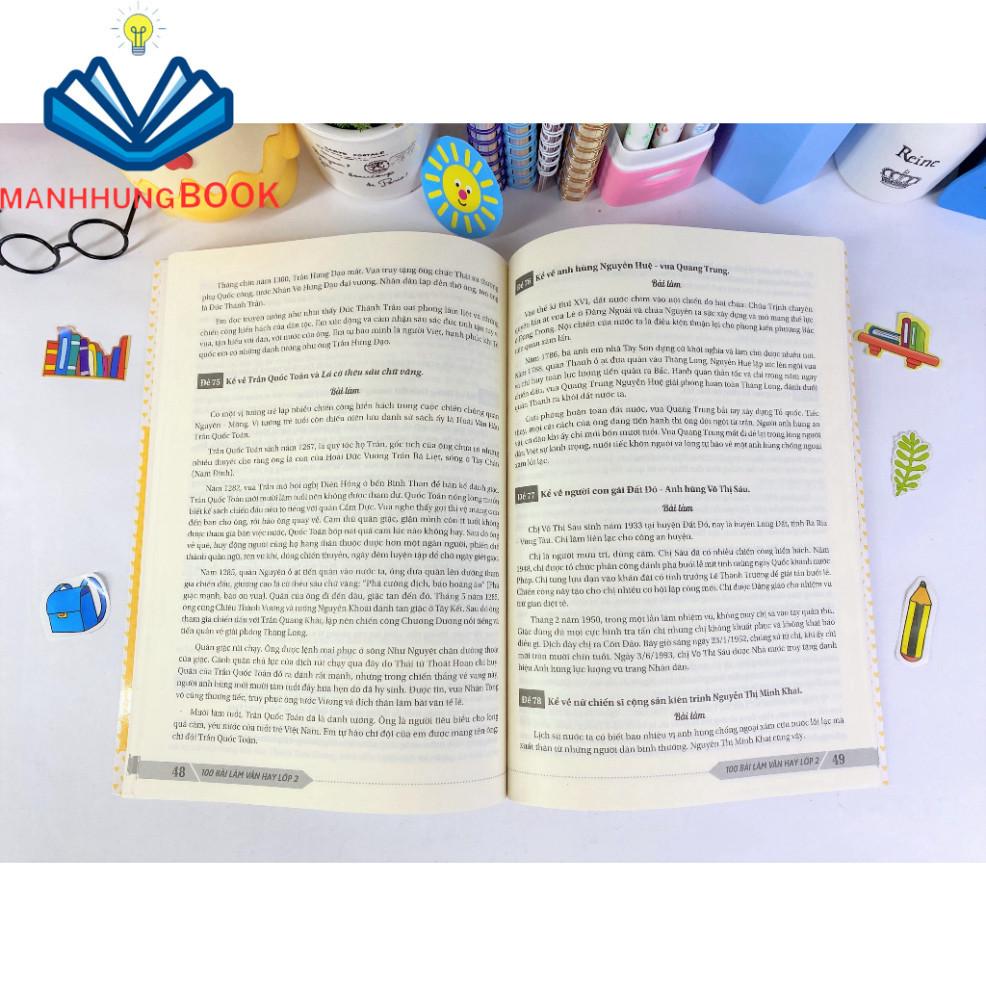 Mua tại Tiktok100 Bài làm văn hay lớp 2 được biên soạn theo chương trình mới của Bộ giáo dục và đào tạo. Nhằm giúp các em có tài liệu tham khảo, luyện tập chuẩn bị tốt cho các bài tập làm văn. Các em sẽ được làm quen những dạng bào văn như kể chuyện, miêu tả, viết thư về cuộc sống quanh em, những người thân yêu trong gia đình, thầy cô, mái trường, quê hương mình, Đây là tài liệu dùng cho cả 3 bộ sách: Cánh Diều, Kết Nối, Chân trời sáng tạo Nhà phát hành: Đang cập nhật Tác giả : ThS. Lê Xuân Soan Nhà xuất bản: NXB Thanh Niên Hình thức: Bìa mềm Năm: 2022 Số trang: 70 trang