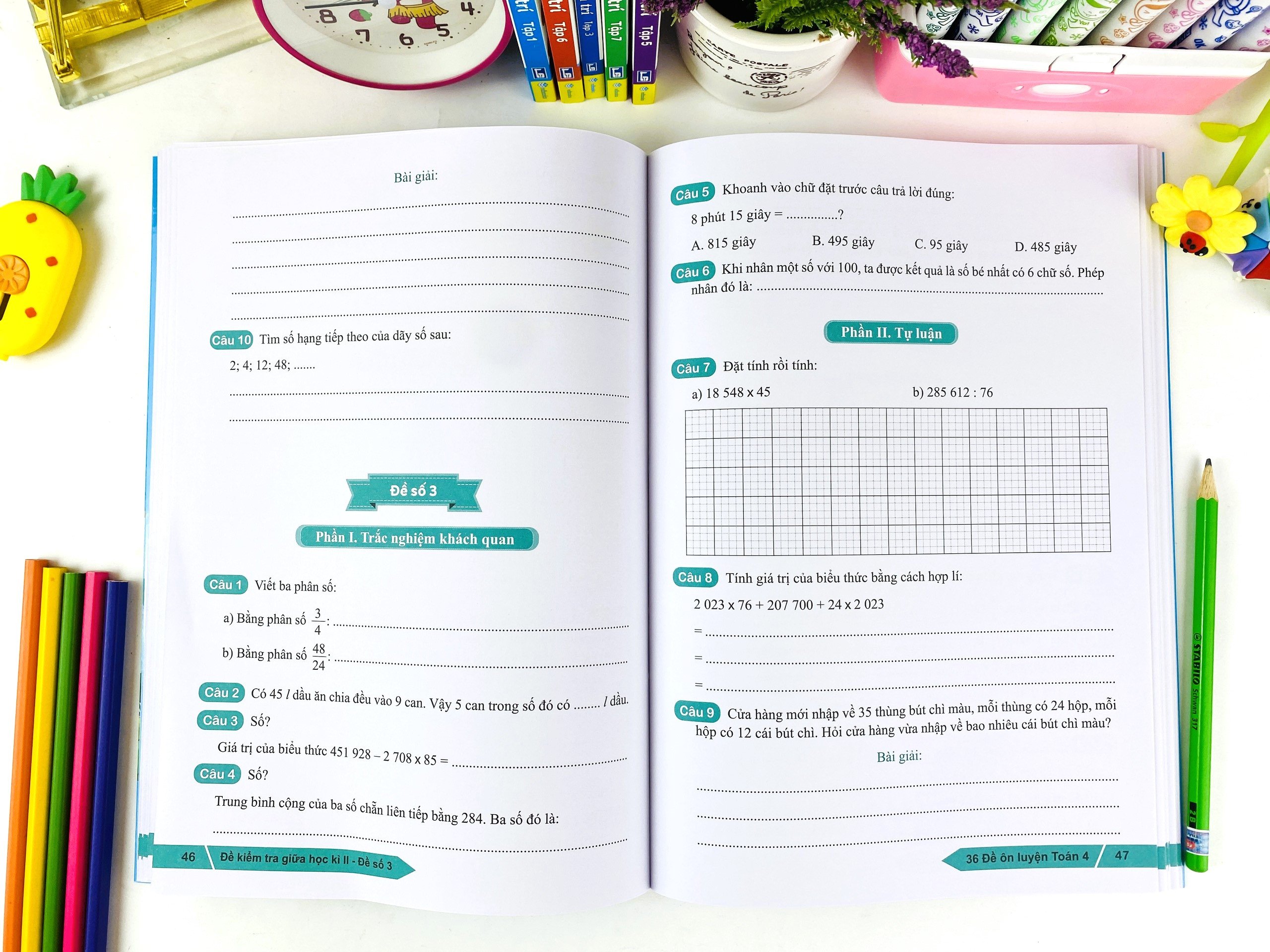 Phần thứ nhất là các đề kiểm tra: gồm 18 đề kiểm tra cuối kì 1 và 18 đề kiểm tra cuối kì 2. Riêng lớp 4 và lớp 5 được phân chia thành: