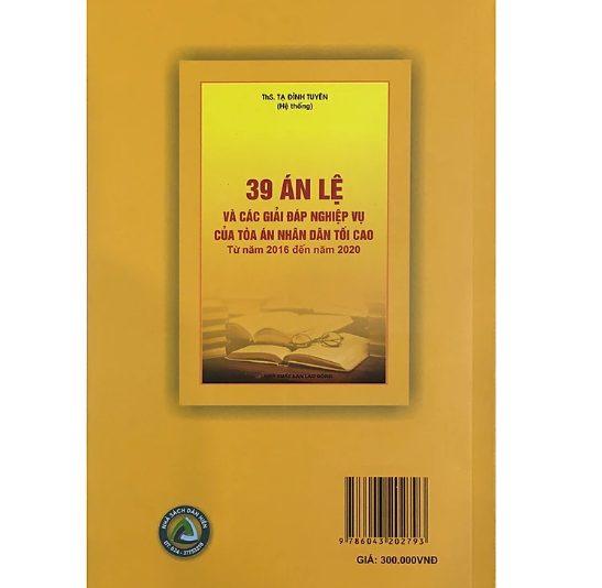 Sách - 39 Án lệ và các giải đáp nghiệp vụ của tòa án nhân dân tối cao - Từ năm 2016 đến năm 2020 Giá bìa: 300000 Nhà phát hành : Dân Hiền Tác