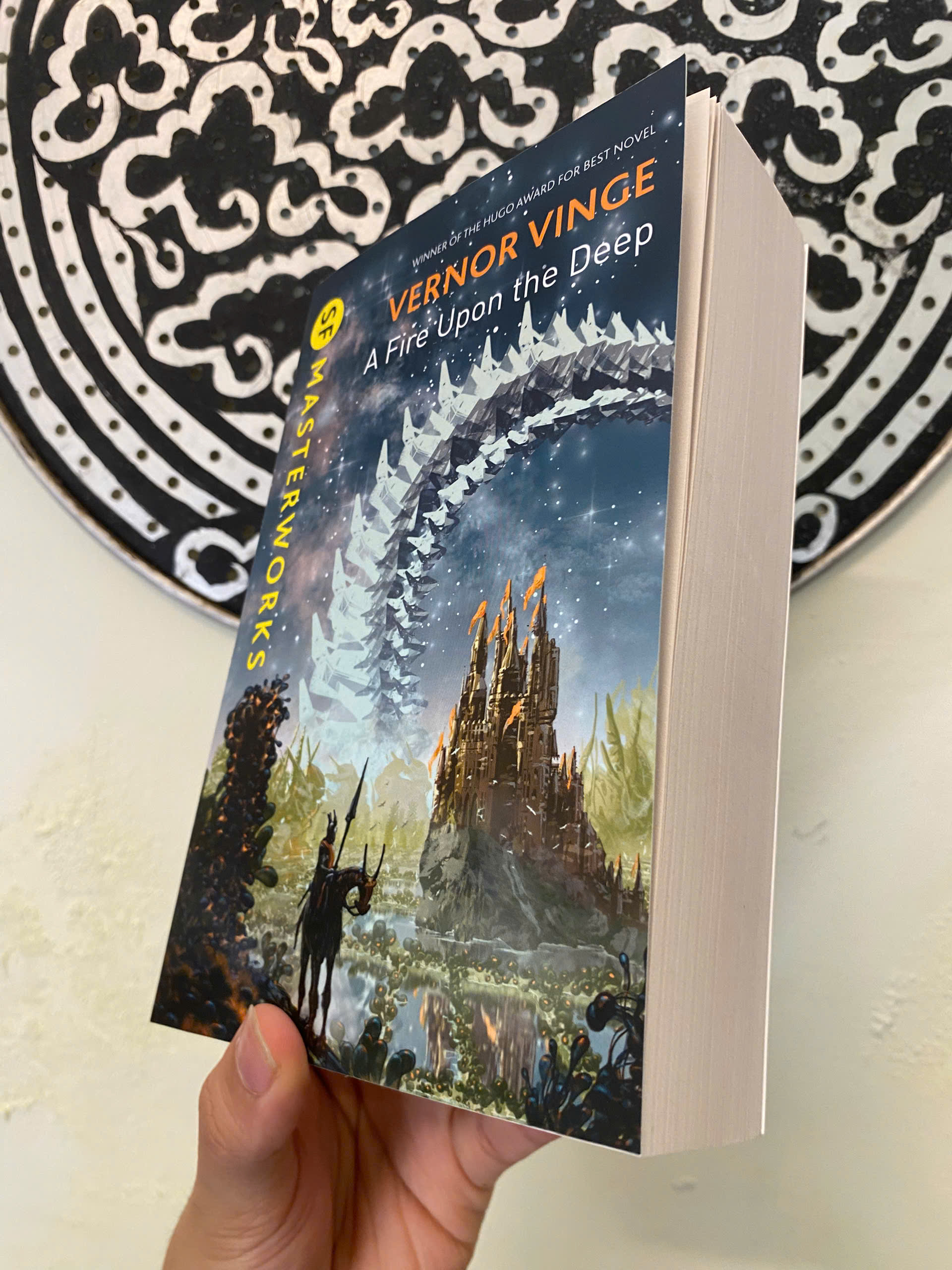 ✨Sách - A Fire Upon the Deep by Vernor Vinge | Award-Winning SF Masterworks English Science Fiction