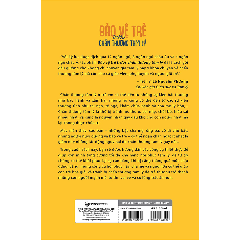 “Bảo vệ trẻ trước chấn thương tâm lý” là một công cụ quan trọng giúp cha mẹ và người lớn chúng ta biết cách xử sự với những đứa trẻ bị chấn thương tâm lý. Chúng ta phải hiểu rằng chấn thương tâm lý là một phần của cuộc sống và chúng ta cần phải trang bị cho mình kiến thức để ứng phó với nó.