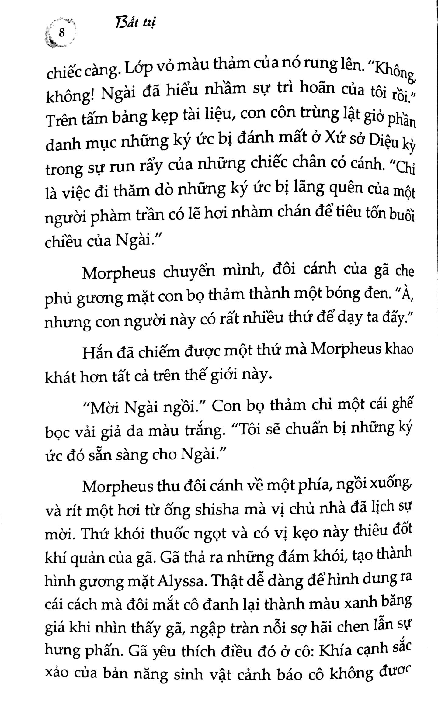 Người ta sẽ còn thắc mắc nhiều. Về việc vì sao Morpheus - một kẻ nham hiểm đáng ghét, gã cô độc ở vùng đất bên-dưới-Hang-Thỏ lại được yêu mến nhiều đến thế. Gã đã làm khổ nữ chính Alyssa Gardner biết bao, khiến nàng và cả người nàng yêu phải trải qua bao trắc trở. Thế nhưng hắn vẫn được bao độc giả thương quý.