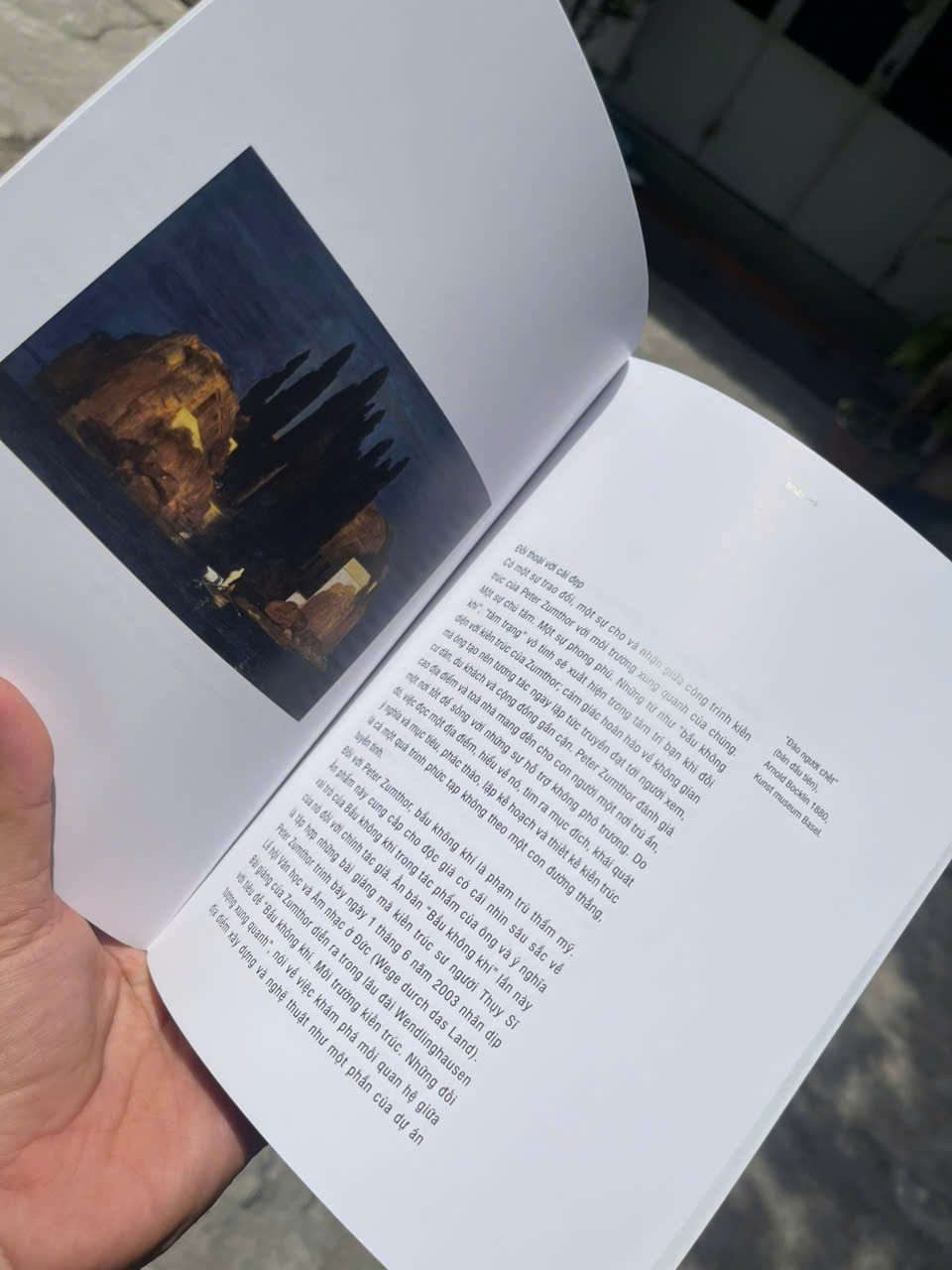 Mua tại TiktokCuốn sách "Bầu không khí" (Atmospheres) của Peter Zumthor là một tác phẩm ngắn gọn nhưng sâu sắc, trong đó kiến trúc sư nổi tiếng người Thụy Sĩ chia sẻ những suy ngẫm cá nhân và đầy cảm xúc về kiến trúc, đặc biệt là cách ông tạo ra và cảm nhận “không khí” – hay “bầu không khí” – trong không gian kiến trúc. Nó không mang tính học thuật nặng nề mà giống như một cuộc trò chuyện chân tình, trong đó ông chia sẻ những nguyên tắc và trải nghiệm cá nhân tạo nên “cảm giác không gian” mà ông luôn hướng đến trong công trình của mình. CHẤT LƯỢNG GIẤY CÁN BÓNG RẤT ĐẸP