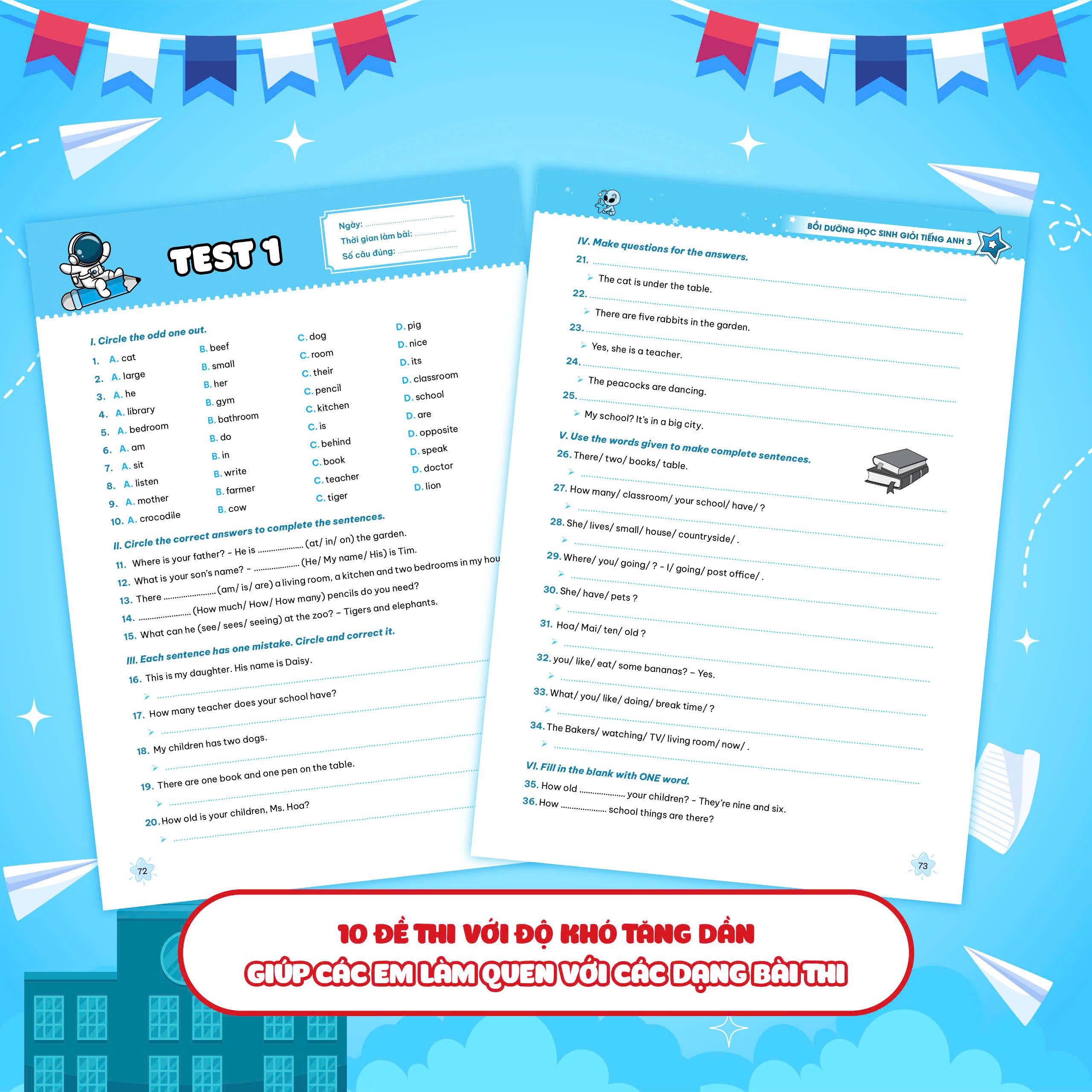 Sách - 50 Đề Tăng Điểm Nhanh Tiếng Anh – Lớp 5 Trong môn Tiếng Anh ở Chương trình giáo dục Tiểu học, các em học sinh đang được làm quen và hiểu kiến thức