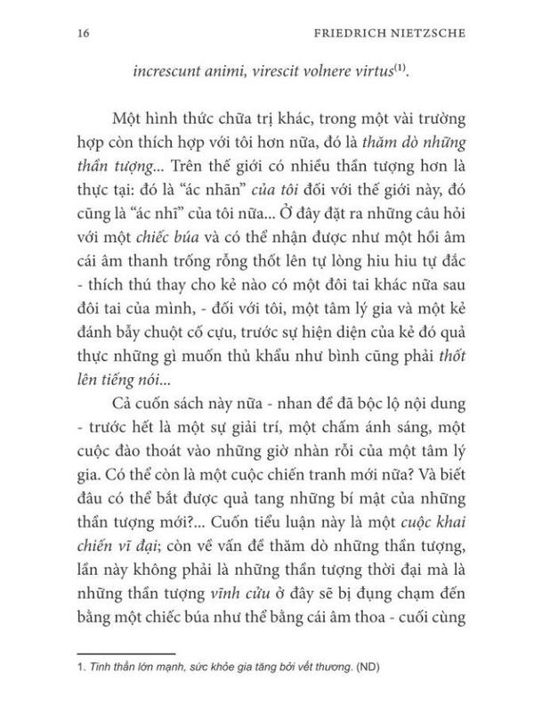 Thần tượng, với Nietzche là chân lý. Chân lý nào rồi cũng sụp đổ, cũng đến lúc bước vào hoàng hôn, lụi tàn và biến mất. Đó chính là tư tưởng triết học chủ đạo trong suốt cuộc đời nghiền ngẫm của Nietzche, cũng như trong tác phẩm này. Tất cả thực tại, quan điểm, lý tưởng, đều sẽ tiêu vong. Nhưng dòng chảy cuộc sống thì vẫn không ngừng, và sẽ chỉ đi theo chính bản năng, chỉ có bản năng là đẹp đẽ giữa mọi điều thối tha.