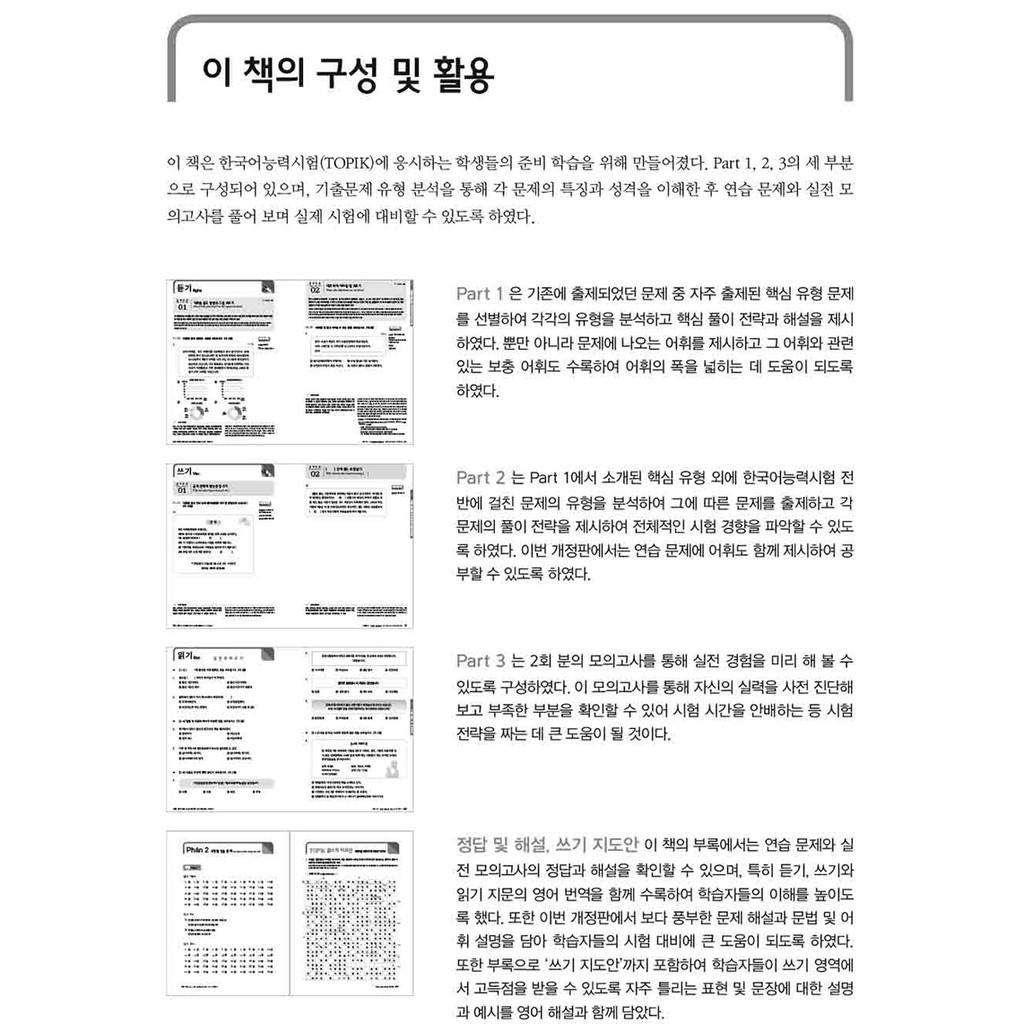 Phần 2 phân tích các dạng đề thi qua các Kỳ thi Năng lực tiếng Hàn, ngoài những dạng chủ chốt đã được giới thiệu ở Phần 1. Theo đó ra đề và trình bày các chiến lược giải đề nhằm giúp người học có thể nắm bắt được toàn bộ khuynh hướng thi. Ấn bản TOPIK mới này nêu ra những từ vựng để có thể học cùng với đề luyện.