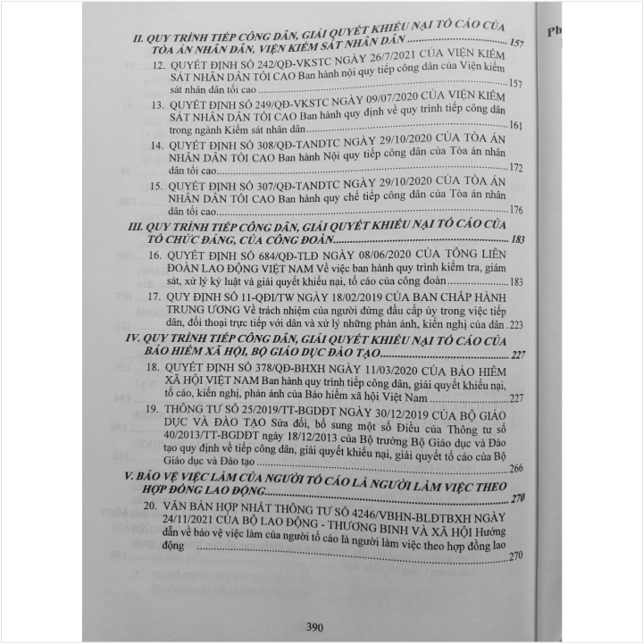 Phần thứ năm. QUY TRÌNH TIẾP CÔNG DÂN, GIẢI QUYẾT KHIẾU NẠI TỐ CÁO CỦA CÁC CẤP, CÁC NGÀNH
