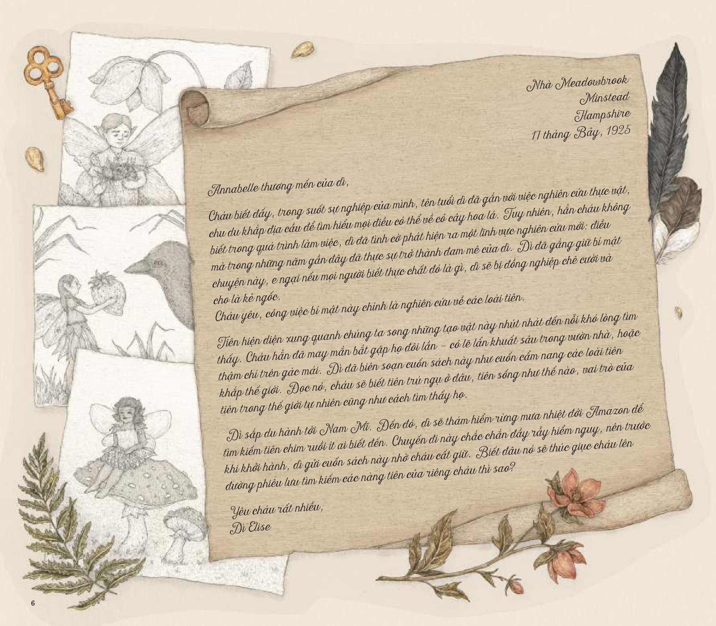 Mua tại TiktokCẩm Nang Về Tiên Bạn đọc thân mến, Bạn đã sẵn sàng cho chuyến hành trình có một không hai chưa? Vậy hãy lật giở cuốn sách này ngay thôi nào! Tiên có thật và hiện diện quanh ta, chỉ cần bạn nhanh trí, tinh mắt và đủ may mắn để trông thấy những tạo vật kì diệu này trong vườn nhà hay trên gác xép mà thôi. Biên soạn bởi nhà thực vật học lẫy lừng – Giáo sư Elsie Arbour, cuốn cẩm nang kì công này được bà gửi tới cháu gái nhằm giúp cô khám phá đời sống bí mật của các loài tiên cũng như vai trò của họ trong thế giới tự nhiên. Tập hợp nhiều ghi chú thực địa chính xác và minh họa cầu kì, từng trang sách tiết lộ đa dạng các loài tiên khác nhau trên khắp đ.ịa cầu, đi sâu phân tích đặc điểm nhận dạng, môi trường sống, tập tính và cả ngôn ngữ bí ẩn của họ. Bạn chắc chắn sẽ phải kinh ngạc trước thế giới các loài tiên siêu sống động và thú vị đấy!