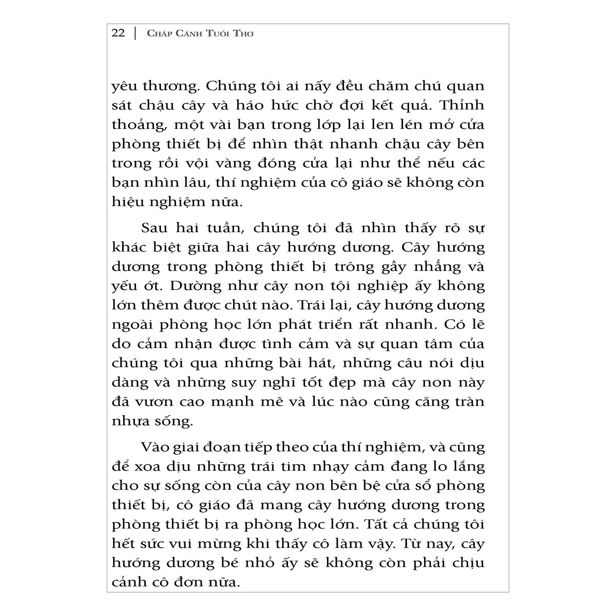 Với lần tái bản thứ 7 này, First News - Trí Việt đã bổ sung thêm 6 mẩu chuyện ngắn. Đồng thời hoàn thiện hơn về mặt biên tập để đảm bảo toàn bộ nội dung cuốn sách được dịch sát nghĩa nhất so với bản gốc. Tất nhiên, “Chắp cánh tuổi thơ” cũng sẽ không thiếu đi tính hấp dẫn, sự gần gũi, quen thuộc trong từng câu chuyện, thực sự chạm tới trái tim nhiều độc giả bởi thông điệp về sự quan tâm, về tình thương, và niềm tin vào những giá trị đẹp đẽ của cuộc sống.