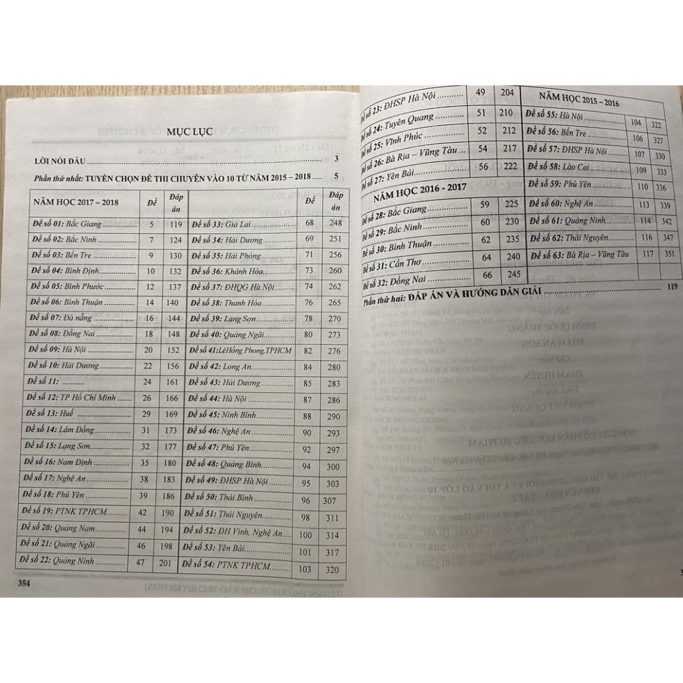 Mua tại TiktokNội dung gồm có: Phần 1: Tuyển chọn đề thi chuyên vào 10 từ năm học 2015-2018 Năm học : 2017 - 2018 Đề số 1 Đề số 2 Đề số 3
