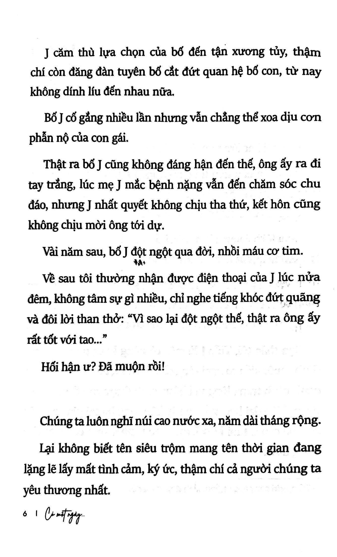 “Trong thế giới của người trưởng thành, những xô bồ chốn đô thị và dụ hoặc nơi trần thế ngày càng nhiều.” Chúng ta bị cuốn vào guồng quay cuộc sống và vô tình bỏ quên những người thân yêu rồi đến khi nhận ra, có những chuyện đã không thể vãn hồi. Thời gian giống như đường một chiều, kẻ lữ hành chúng ta chỉ có thể tiến về phía trước và tuổi tác của bố mẹ cũng vậy, sẽ ngày một già đi theo năm tháng.