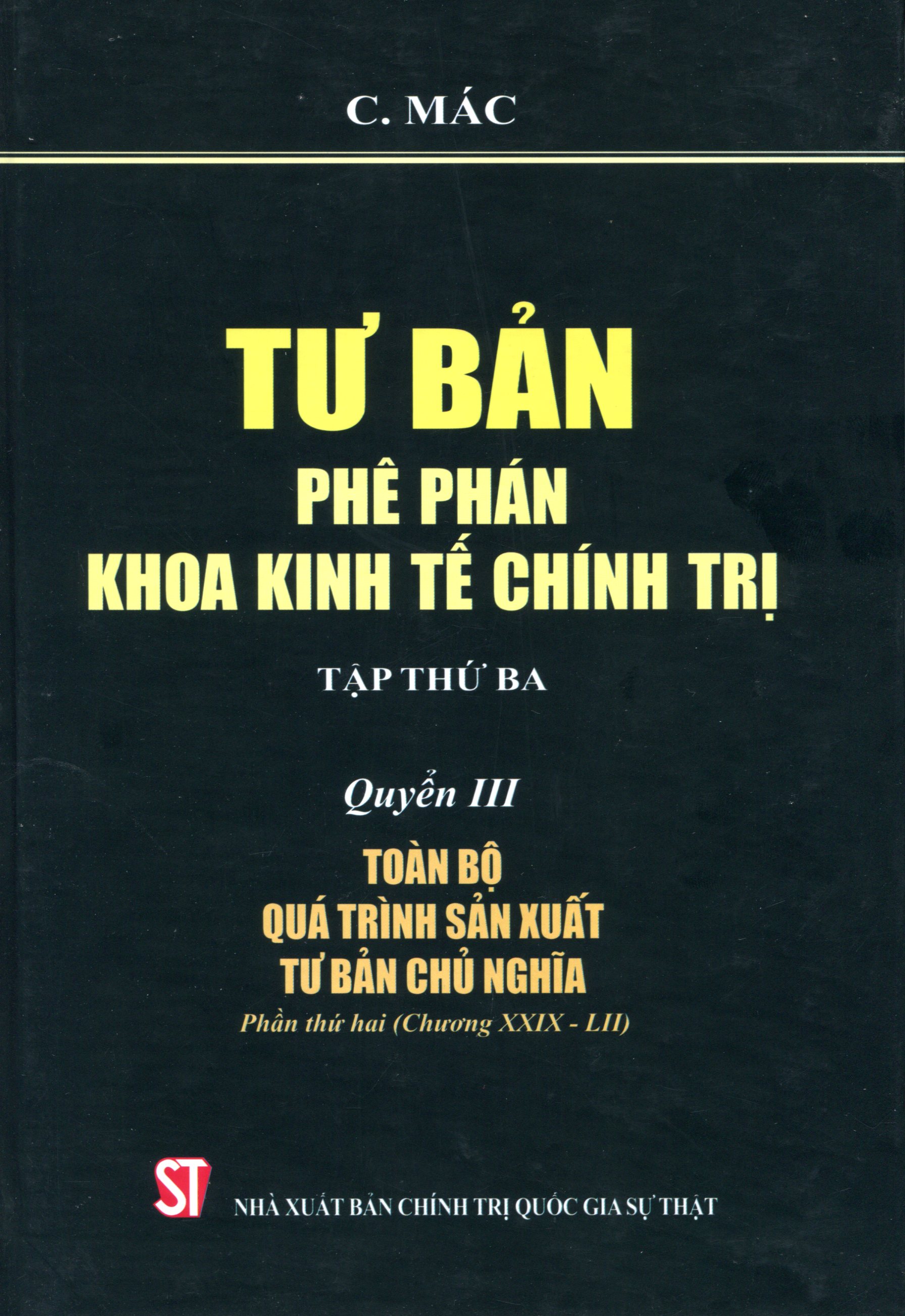 Tập thứ ba: + Quyển III: Toàn bộ quá trình sản xuất tư bản chủ nghĩa – Phần thứ nhất (Chương I – XXVIII)