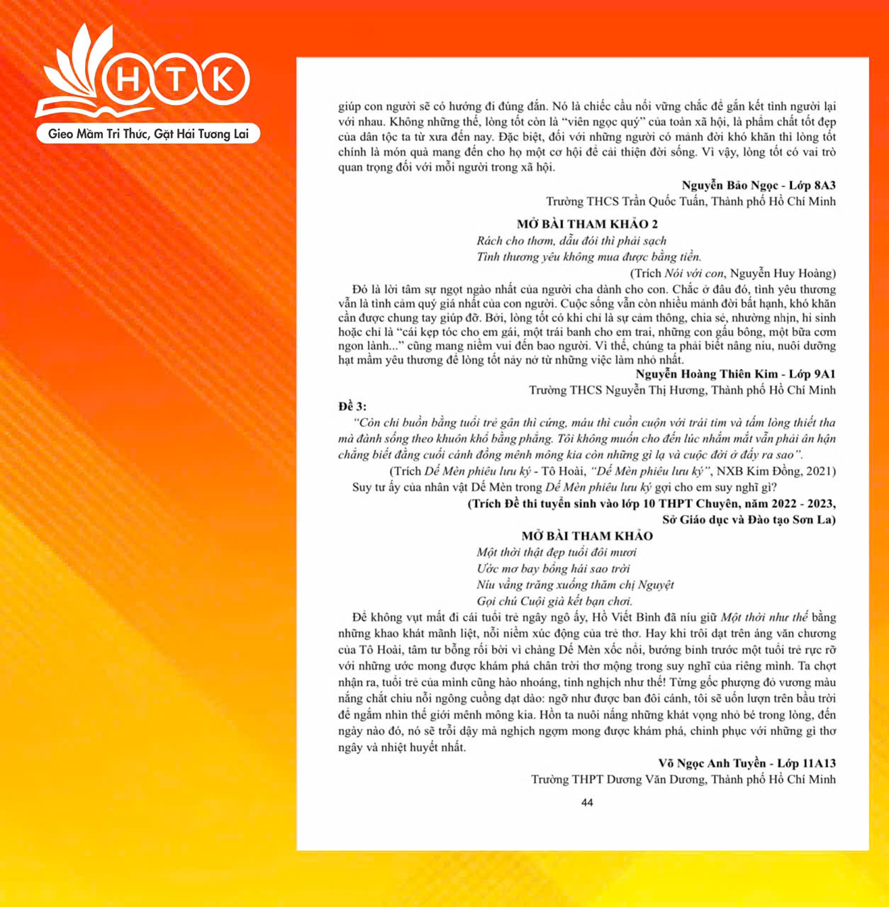 Điểm đáng chú ý của cuốn sách này là tuyển chọn 30 đề thi và đáp án tham khảo cùng nhiều đề bài luyện tập hay được sưu tầm và tuyển chọn. Để giúp bạn đọc có thêm nguồn tư liệu tham khảo thật phong phú, ngoài các đoạn và bài viết của học sinh đã được chỉnh sửa và hoàn thiện, chúng tôi xin phép được trích dẫn một số tác phẩm của nhà văn, nhà thơ; sử dụng đề thi và đáp án chính thức của Phòng Giáo dục và Đào tạo một số thị xã/huyện; Sở Giáo dục và Đào tạo một số tỉnh thành; của Bộ Giáo dục và Đào tạo trong thời gian gần đây.