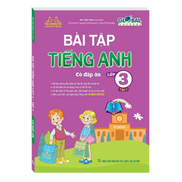 1 : GLOBAL SUCCESS - Bài tập tiếng anh lớp 3 tập 1 (có đáp án) Tác giả: Nhiều tác giả NXB: NXB Đại Học Quốc Gia Hà Nội Năm xuất bản: 2022 Dạng bìa: bìa mềm Số trang: 152 trang Kích thước: 19 x 27cm 2 :GLOBAL SUCCESS - Bài tập tiếng anh lớp 3 tập 2 (có đáp án) Tác giả: Nhiều tác giả NXB: NXB Đại Học Quốc Gia Hà Nội Năm xuất bản: 2022 Dạng bìa: bìa mềm Số trang: 140 trang Kích thước: 19 x 27 cm