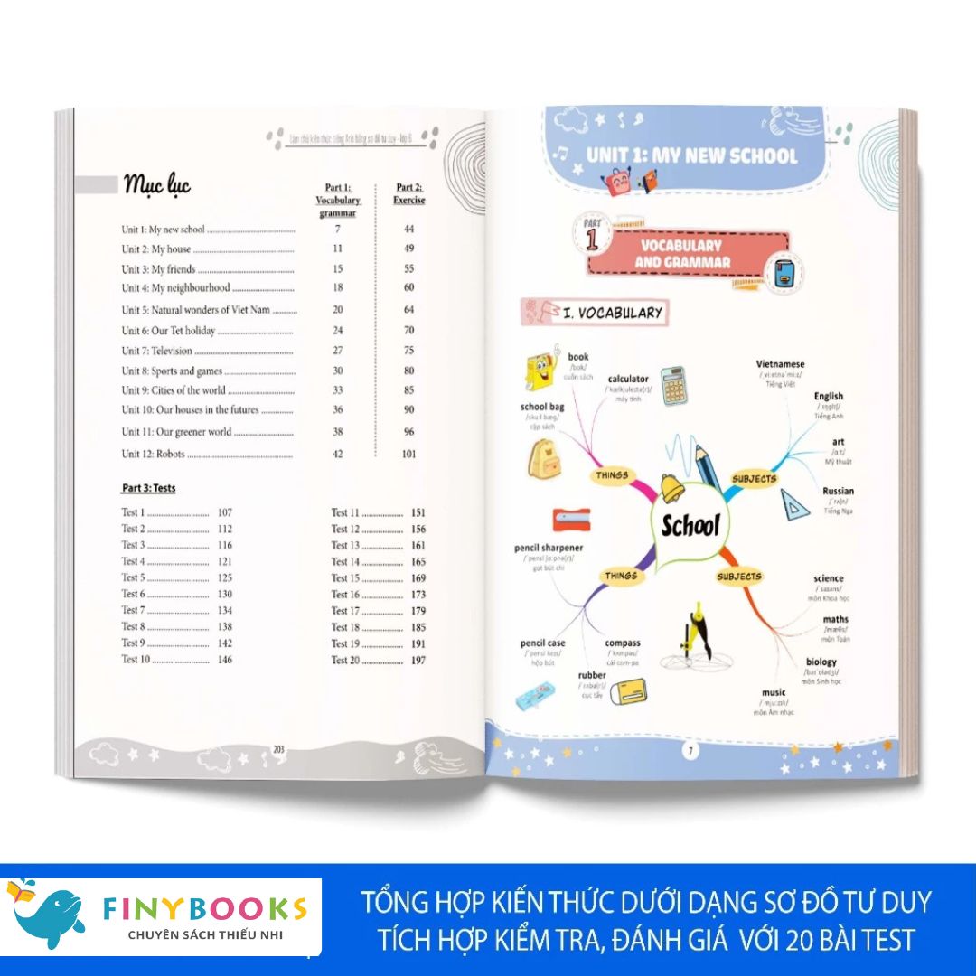 Trong phần 3, các em sẽ có cơ hội tự kiểm tra, đánh giá trình độ tiếng Anh của mình với 20 bài test từ dễ đến khó. Các bài test này được thiết kế như những bài kiểm tra trên lớp nhằm giúp các em luyện tập sâu hơn về những kiến thức mình đã học.