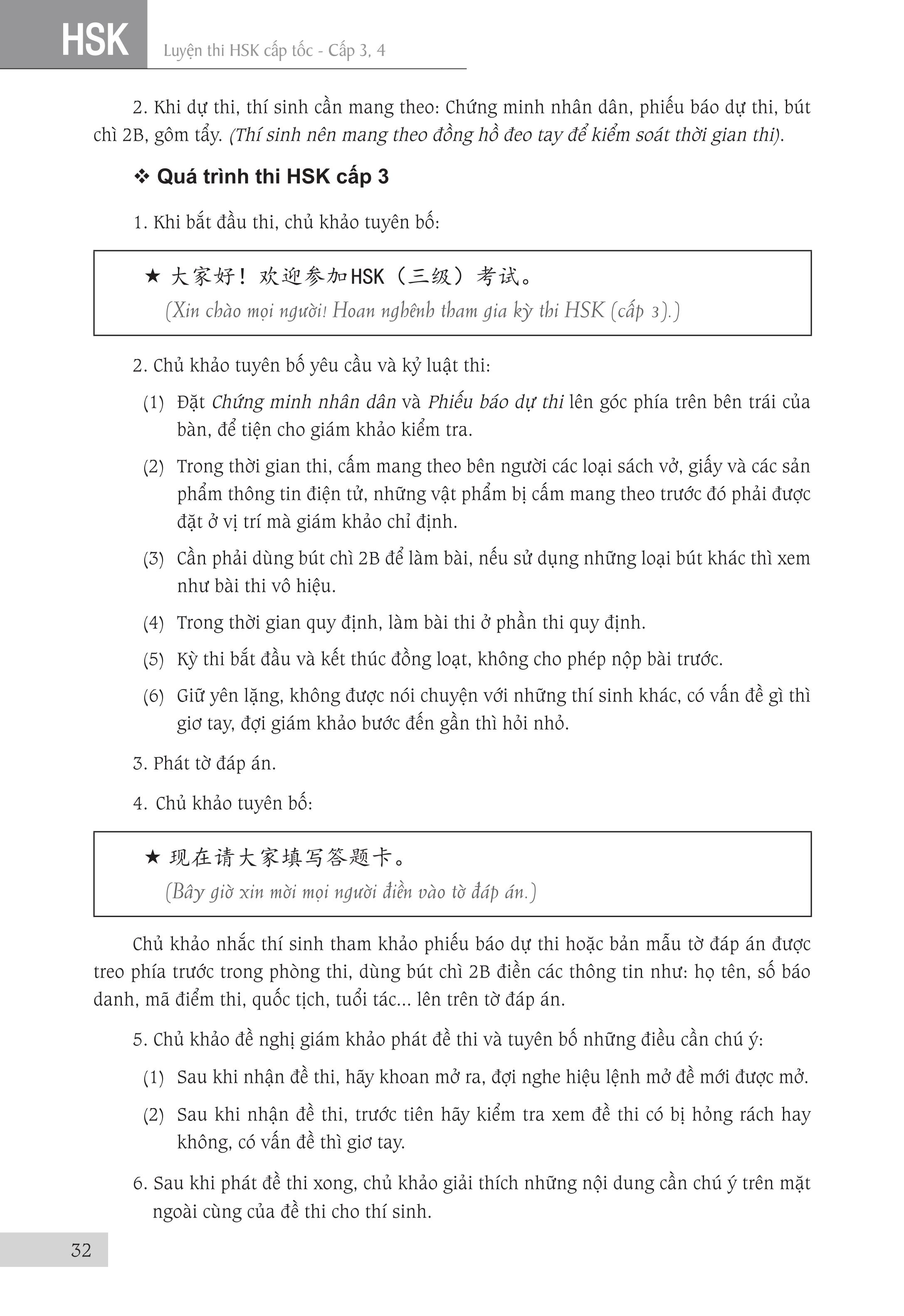 1. Luyện thi HSK cấp tốc cấp 3+4 Tác giả: Trương Văn GIới & Lê Khắc Kiều Lục Nhà xuất bản Đại Học Quốc Gia TPHCM Số trang: 424 Kích thước: 18.5cm x 26.5cm x
