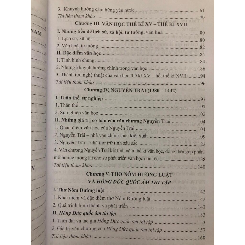 Nội dung gồm có: Chương I. Khái quát văn học trung đại Việt Nam Chương II. Văn học thế kỉ X- thế kỉ XIV Chương III. Văn học thế kỉ XV- thế kie XVII Chương IV. Nguyễn Trãi Chương V. Thớ Nôm Đường luật và Hồng Đức quốc âm thi tập Chương VI. Nguyễn Bỉnh Khiêm Chương VII. Thể loại truyền kì và Truyền kì mạn lục Chương VIII. Khái quát giai đoạn văn học từ thế kỷ XVIII đến nữa đầu thế kỷ XIX Chương IX. Tiểu thuyết chương hồi và Hoàng Lê nhất thống chí Chương X. Thể ký và Thượng kinh ký sự Chương XI. Thể ngâm khúc và Chinh phụ ngâm khúc Chương XII. Truyện thơ Nôm Chương XIII. Nguyễn Du và Đoạn trương tân thanh Chương XIV. Hồ Xuân Hương Chương XV. Bà Huyện Thanh Quan Chương XVI. Thơ chữ Hán và Cao Bá Quát Chương XVII. Hát nói và Nguyễn Công Trứ Chương XVIII. Khái quát giai đoạn văn học nữa cuối thế kỷ XIX Chương XIX. Nguyễn Đình Chiểu Chương XX. Nguyễn Khuyến Chương XXI. Trần Tế Xương Tác giả: Lã Nhâm Thìn, Vũ Thanh, Đinh Thị Khang, Trần Thị Hoa Lê, Nguyễn Thị Nương, Nguyễn Thanh Tùng Số trang: 224+400 Xuất bản: 2025 Nhà xuất bản: Giáo dục Việt Nam Công ty phát hành: Công ty CP Sách Đại học - Dạy nghề NTBOOKS Chắp cánh tri thức - Vững bước tương lai