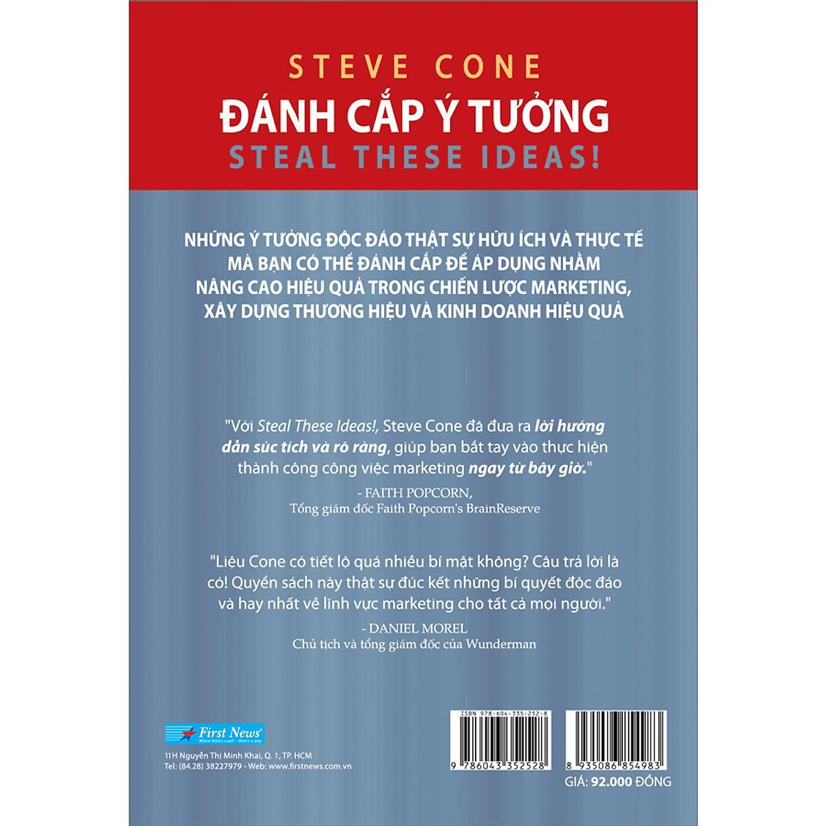 Hãy thoải mái thưởng thức các câu chuyện, học hỏi những phương pháp được nêu trong từng trang sách và quan trọng nhất là: đừng ngần ngại đánh cắp các ý tưởng. Nên nhớ, đây là những bí quyết chưa ai từng dạy bạn trước đây và là tất cả những gì bạn cần để thật sự tỏa sáng trong lĩnh vực tiếp thị - ngay bây giờ chứ không cần phải đợi đến một hoặc hai thế hệ nữa! (Steven Cone).
