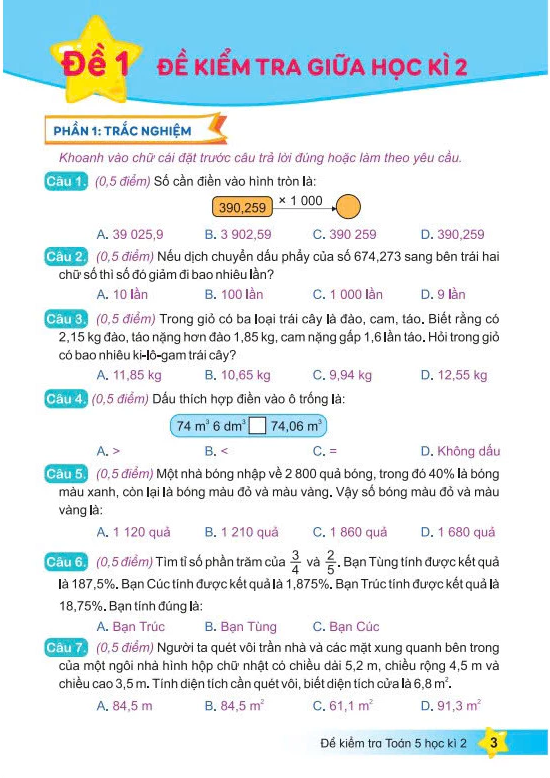 Đề số 1 | Đề kiểm tra giữa học kì 2 | Toán lớp 5 | Kết Nối | Thầy Nguyễn Văn Quyền