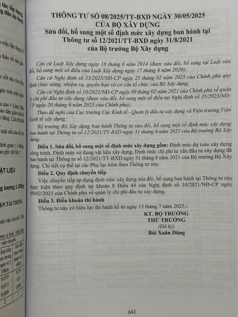 Thông tư số 08-2025-TT-BXD, ngày 30/05/2025 Về việc sửa đổi và bổ sung các định mức xây dựng