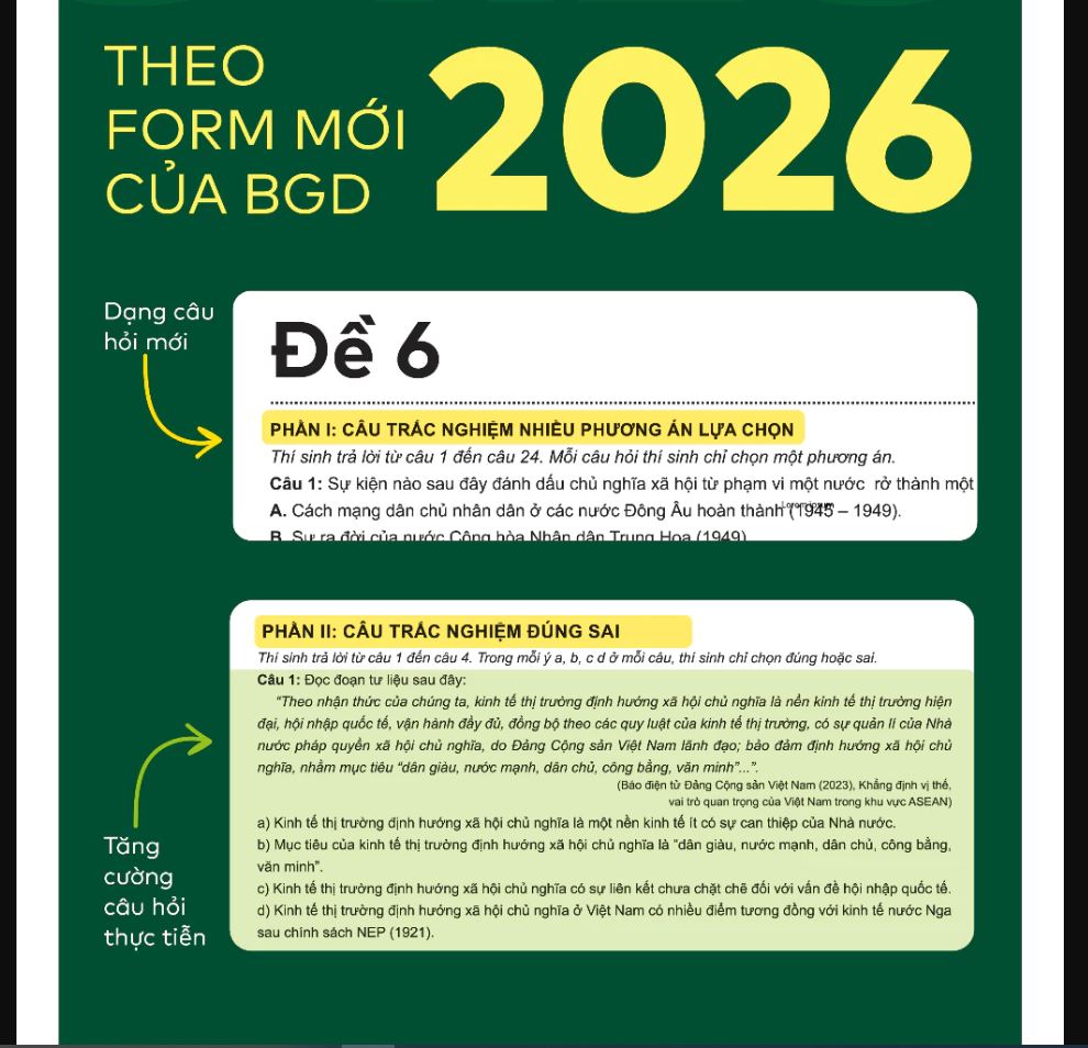 Các chủ đề trong sách bám sát theo chương trình mới, định hướng thi mới với 3 hình thức câu trắc nghiệm mới: