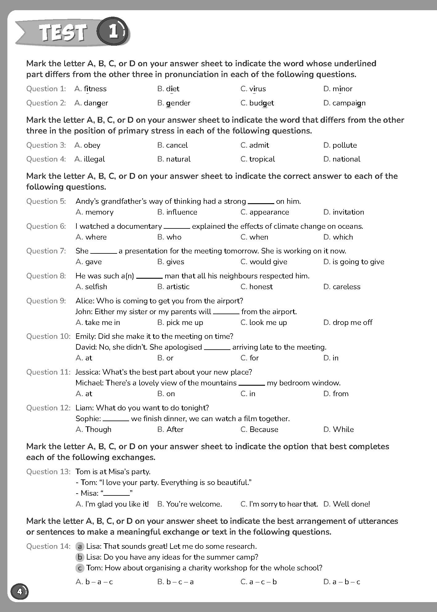 • Đúng trọng tâm các chủ điểm từ vựng, ngữ pháp, ngữ âm​