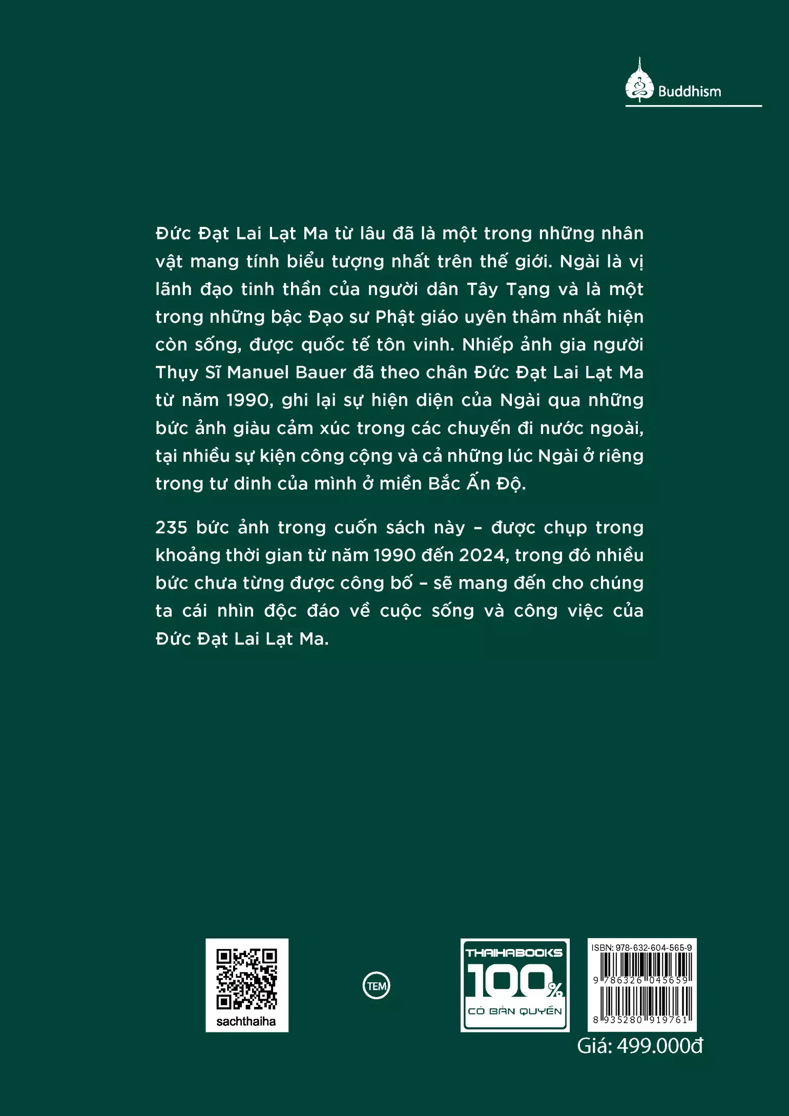 Đức Đạt Lai Lạt Ma từ lâu đã là một trong những nhân vật mang tính biểu tượng nhất trên thế giới. Ngài là vị lãnh đạo tinh thần của người dân Tây Tạng và là một trong những bậc Đạo sư Phật giáo uyên thâm nhất hiện còn sống, được quốc tế tôn vinh. Nhiếp ảnh gia người Thụy Sĩ Manuel Bauer đã theo chân Đức Đạt Lai Lạt Ma từ năm 1990, ghi lại sự hiện diện của Ngài qua những bức ảnh giàu cảm xúc trong các chuyến đi nước ngoài, tại nhiều sự kiện công cộng và cả những lúc Ngài ở riêng trong tư dinh của mình ở miền Bắc Ấn Độ.
