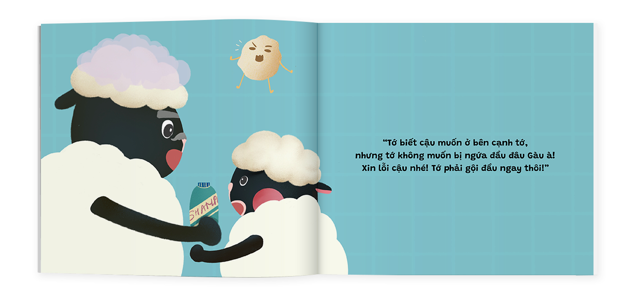 Cừu nhỏ bị bẩn và ngứa nên nhờ bố hướng dẫn gội đầu. Thấy Cừu nhỏ gội đầu, bạn Gàu sợ lắm nên xin Cừu nhỏ đừng gội đầu nữa. Nhưng Cừu nhỏ không muốn bạn Gàu sống trên đầu của mình chút nào cả. Với cuốn sách này, dõi theo câu chuyện của Cừu nhỏ, bé sẽ biết được các bước để có thể gội đầu là như thế nào đấy nhé! Từ nay, bé sẽ luôn là một em bé thơm tho sạch sẽ vì đã biết vệ sinh cá nhân như Cừu nhỏ rồi đấy!