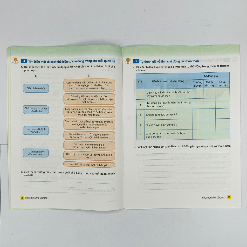 Mua tại TiktokSách - Giáo Dục Kĩ Năng Sống Lớp 5 - NXB Giáo Dục Cuốn sách "Giáo Dục Kĩ Năng Sống Lớp 5" được biên soạn với mục tiêu giúp các em học sinh rèn luyện, thực hành và phát triển các kỹ năng cần thiết trong cuộc sống hằng ngày. Nội dung sách được thiết kế phù hợp với lứa tuổi, bám sát các tình huống thực tế mà trẻ thường gặp, từ đó hướng dẫn các em cách ứng xử, giao tiếp, hợp tác, tự lập và giải quyết vấn đề một cách hiệu quả. Nội dung sách nổi bật: