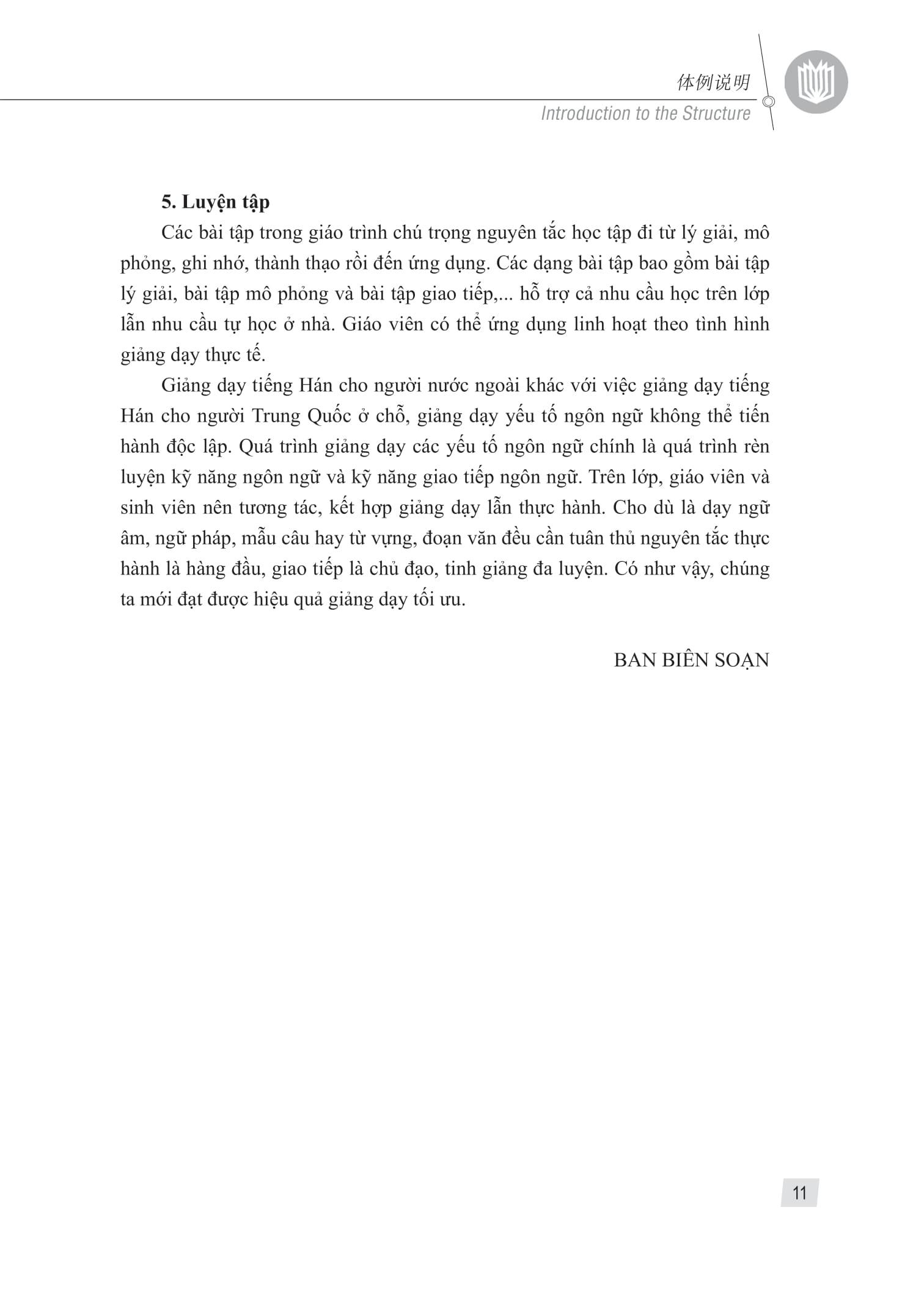 Phần chú thích trong giai đoạn ngữ âm chủ yếu giới thiệu kiến thức cơ bản về ngữ âm tiếng Hán. Còn ở giai đoạn ngữ pháp và mẫu câu, chủ yếu giới thiệu và giải thích một số kiến thức trọng điểm về ngôn ngữ và bối cảnh văn hóa Trung Quốc. Đối với những câu có điểm ngữ pháp xuất hiện trong bài khóa nhưng chưa được giải thích, hãy để sinh viên được hiểu nghĩa thông qua phần dịch nội dung chú thích.