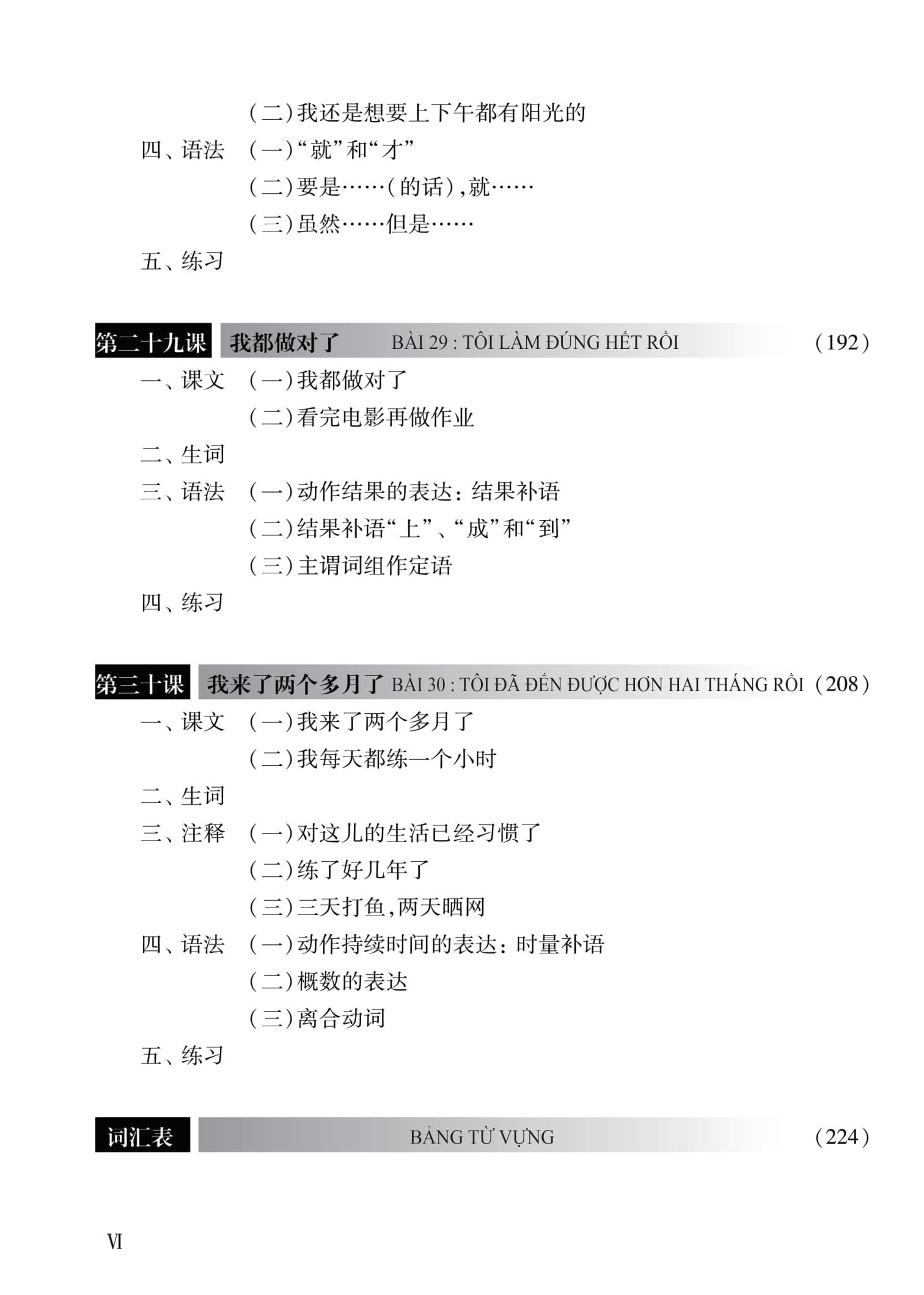 • Luyện tập Thông qua mỗi bài học các bạn được học đầy đủ các kiến thức, bắt đầu mỗi bài các bạn nên tự học từ phần một đến phần 5, không nên nhảy cóc qua các phần để đạt được hiệu quả cao nhất. Hệ thống ngữ pháp và từ mới theo từng bài So với tập 1, tập 2 với hệ thống ngữ pháp khó hơn và lượng từ mới nhiều hơn rất nhiều. Hệ thống từ vựng bám sát theo từng chủ đề, mỗi bài các bạn được học từ 30 – 40 từ vựng liên quan đến chủ đề. Ngoài ra ở cuối sách còn có bảng từ vựng cung cấp gần 372 từ vựng đủ cho những người mới học. Nếu trong tập 1 từ bài 10 các bạn mới học ngữ pháp thì từ tập 2 các bạn được học ngữ pháp trong cả 15 bài học. Các cấu trúc luôn có ví dụ đi kèm, đây đều là những ví dụ minh họa gần gũi, dễ hiểu nhất với những người mới bắt đầu. Ngoài ra còn có đoạn hội thoại ngắn giúp các bạn hiểu cách đưa cấu trúc ngữ pháp đã học vào đoạn hội thoại. Với hệ thống ngữ pháp và từ vựng trong tập 2 người học đã có thể tự tin chinh phục kỳ thi HSK cấp độ 2. Giúp người học phát triển đồng thời cả 4 kỹ năng Sau khi học xong tập 1 các bạn đã nắm chắc được các kỹ năng phát âm cơ bản. Tập 2 này các bạn sẽ được ứng dụng các kiến thức đã học một cách tối đa qua các đoạn hội thoại có độ dài và khó cao hơn tập 1. Giáo trình được biên soạn theo hướng mẫu câu để trực tiếp đi vào thực hành giao tiếp. Phần bài khóa và nội dung đàm thoại có quan hệ chủ điểm đồng nhất với bài luyện đọc trong phần bài tập. Phần bài tập cũng chú ý tới rèn luyện kỹ năng giao tiếp, mô phỏng và bồi dưỡng trí nhớ cho sinh viên. Ngoài ra các bài nghe đều được các giảng viên của Đại học Ngôn ngữ Bắc Kinh thực hiện, qua đó các bạn nâng cao được kỹ năng nghe một cách nhanh nhất. Khi hoàn thành trình độ này người học sẽ có khả năng nghe – nói – đọc – viết đều ở mức cơ bản, và có thể sử dụng được trong những tình huống nhất định. Người học rèn được kỹ năng viết chữ Ở cuối mỗi bài học sẽ có các bảng từ được kẻ ô sẵn giúp các bạn luyện tập viết chữ Hán đúng chuẩn. Những chữ khó, sách đã có phần kẻ mờ, người học chỉ cần viết lại theo các nét đã được vạch ra để học được cách viết các nét chính xác. Dịch bằng 2 thứ tiếng Cuốn sách có phiên âm pinyin giúp các bạn đọc và hiểu được tiếng Trung. Bên cạnh đó sách còn dịch sang cả tiếng Anh và tiếng Việt giúp các bạn tăng thêm hiểu biết về nhiều ngôn ngữ cùng lúc. Tăng thêm sự hiểu biết về đất nước Trung Hoa Chủ điểm bài khóa bao gồm nhiều lĩnh vực trong đời sống hàng ngày, giới thiệu những kiến thức về con người và đất nước Trung Quốc nhằm tăng sự hiểu biết về đất nước này. Các phần chú thích chi tiết cũng nêu rõ những kiến thức về ngôn ngữ và bối cảnh văn hóa Trung Hoa. Từ đó các bạn không chỉ học được tiếng Trung mà còn nâng cao sự hiểu biết của m.ình về Trung Quốc. Bạn là người học tiếng Trung, hãy tham khảo cuốn sách này để việc học tập trở nên đơn giản và nhẹ nhàng hơn nhé.