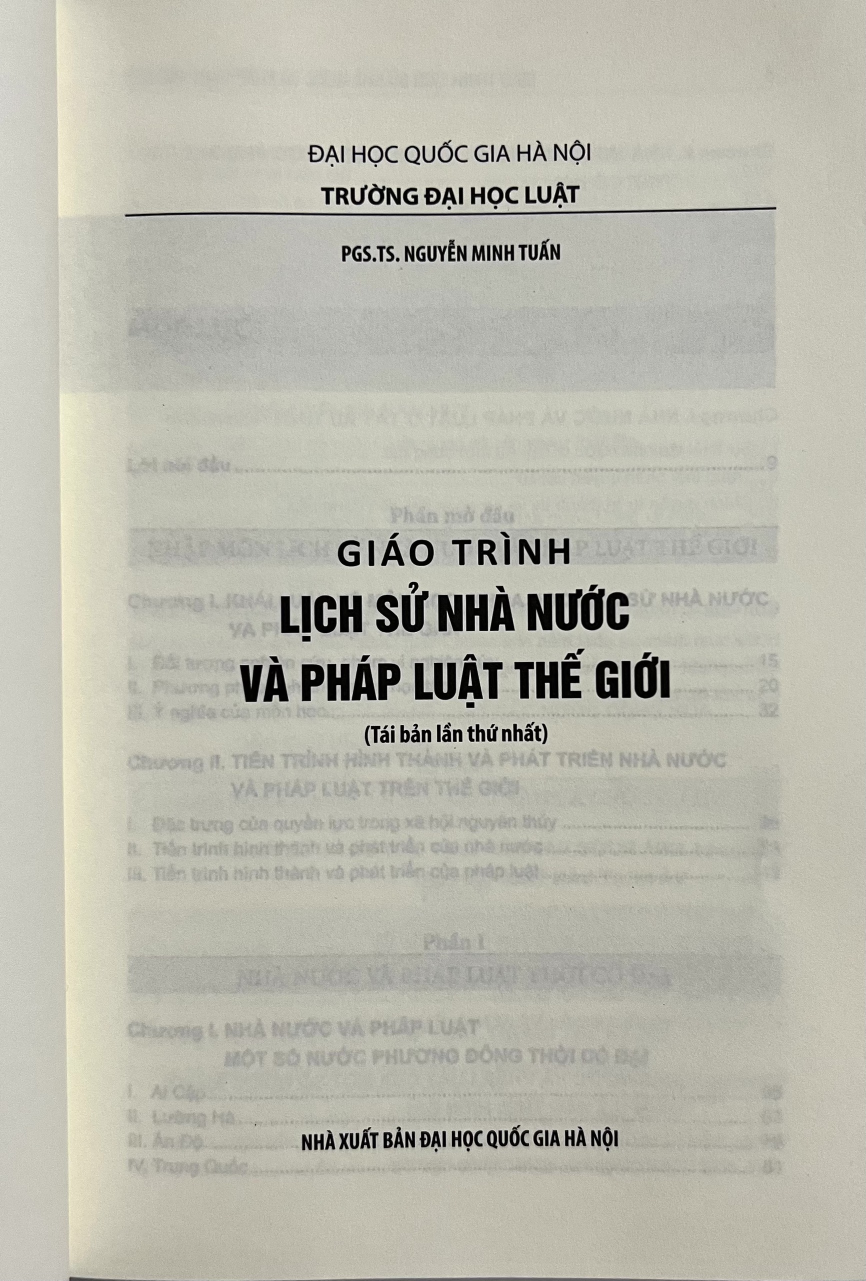 Nhà nước và pháp luật là hai hiện tượng quan trọng và rộng lớn nhất thuộc kiến trúc thượng tầng, hai hiện tượng này thường xuyên có sự vận động và biến đổi không ngừng.Nhà nước và pháp luật là hai hiện tượng quan trọng và rộng lớn nhất thuộc kiến trúc thượng tầng, hai hiện tượng này thường xuyên có sự vận động và biến đổi không ngừng. Lịch sử nhà nước và pháp luật nói chung và lịch sử nhà nước và pháp luật thế giới nói riêng là môn học cung cấp cho người học một cách nhìn tổng quan về quá trình phát sinh, tồn tại, phát triển cũng như xu hướng vận động của hai hiện tượng này từ quá khứ đến hiện tại.Môn học lịch sử nhà nước và pháp luật thế giới nhiều năm nay được giảng dạy tại Khoa Luật, Đại học Quốc gia Hà Nội và nhiều cơ sở đào tạo luật học khác trong cả nước. Giáo trình sẽ đáp ứng được một phần nhu cầu giảng dạy và học tập môn Lịch sử nhà nước và pháp luật thế giới của giáo viên và sinh viên, là tài liệu bổ ích cho tất cả những sinh viên, học viên cao học ngành luật học, các ngành khoa học xã hội và nhân văn, cũng như những ai quan tâm, muốn tìm hiểu một cách hệ thống những kiến thức cơ bản về lịch sử nhà nước và pháp luật thế giới.