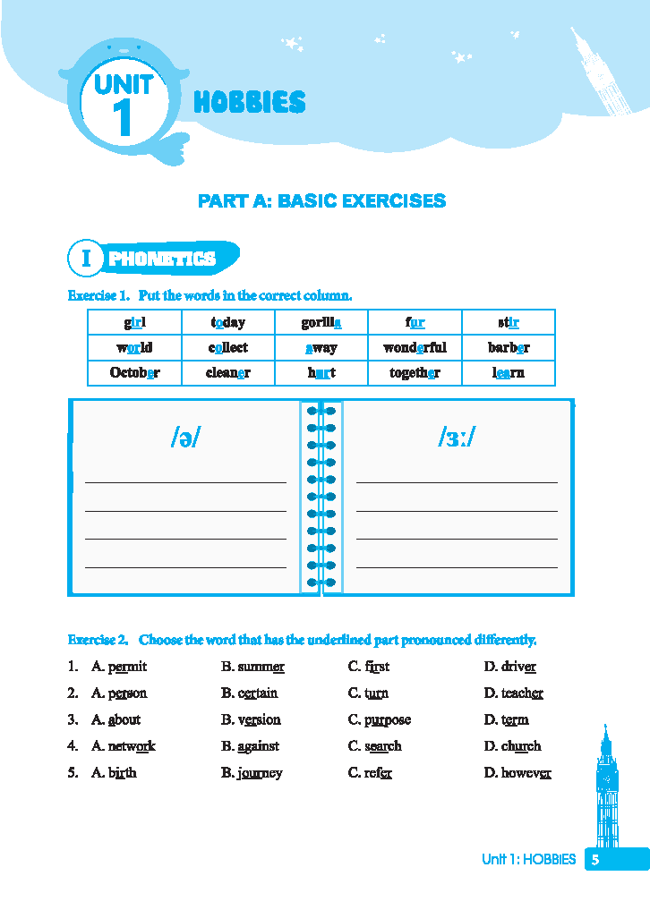SBT Tiếng Anh lớp 7 - Unit 1: Hobbies - Pronunciation - trang 3 - Global success - Kết nối tri thức