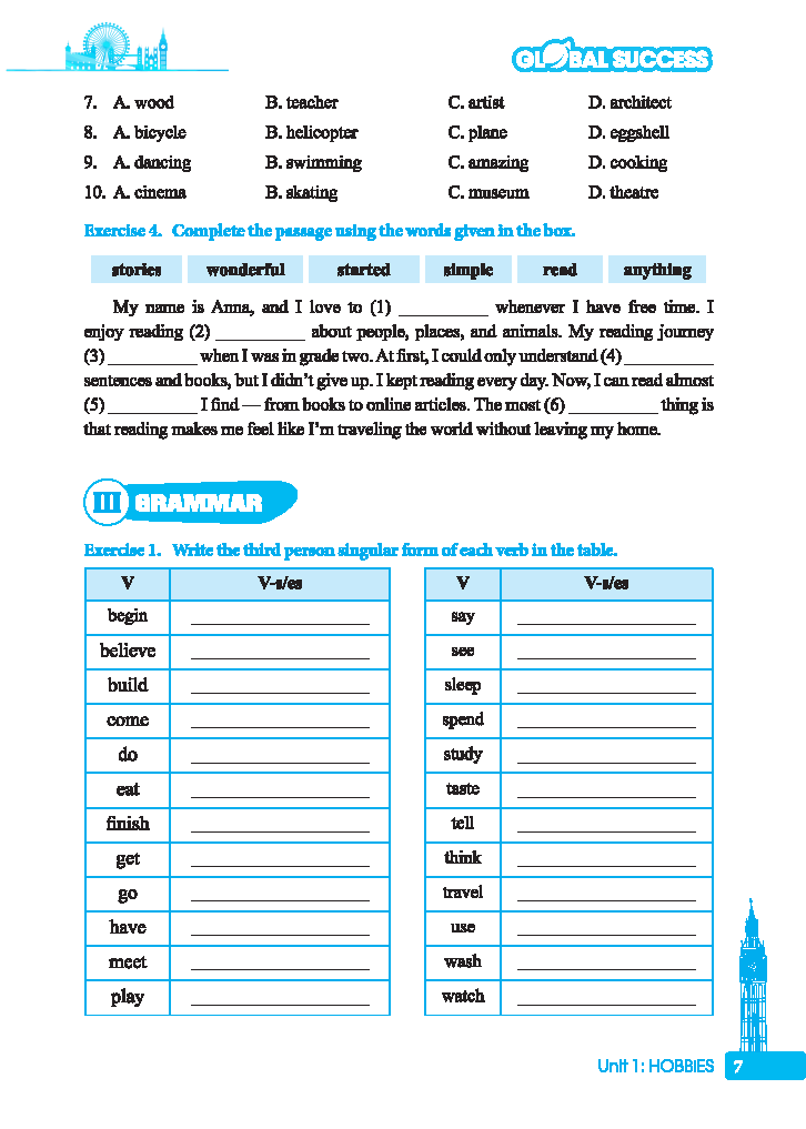 Tiếng Anh 7 Global Success - Unit 1 Hobbies (Kết Nối Tri Thức Và Cuộc Sống) - Giải Sách Bài Tập