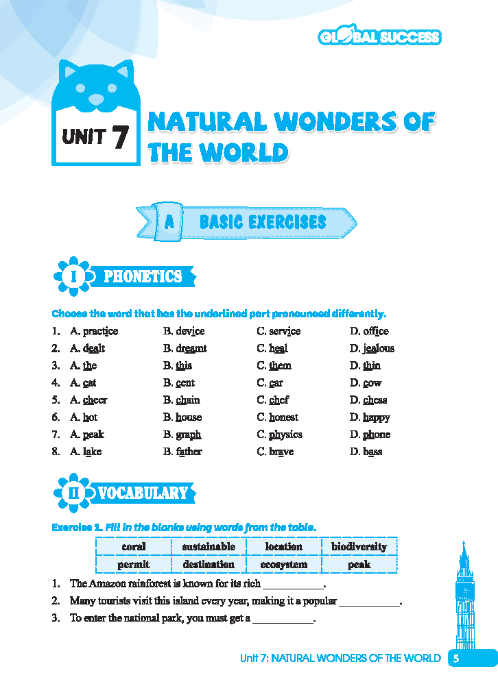 - Phần bài tập nâng cao: được thiết kế để đánh thức và phát triển kỹ năng tiếng Anh nâng cao của các em. Những bài tập ở phần này tập trung vào việc mở rộng vốn từ vựng, phát triển mạnh kiến thức ngữ pháp, rèn luyện kĩ năng đọc hiểu sâu và kĩ năng viết sáng tạo. Các em sẽ được khuyến khích tư duy linh hoạt và sáng tạo thông qua các hoạt động và bài tập đa dạng