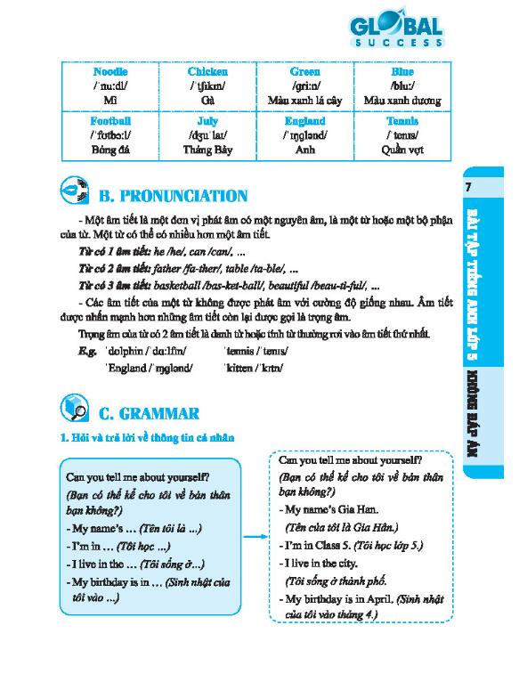 Giải sách Bài Tập Tiếng Anh lớp 5 (Sách Mới) Unit 1 Trang 4 -7 - Global Success | Cô Minh Hậu