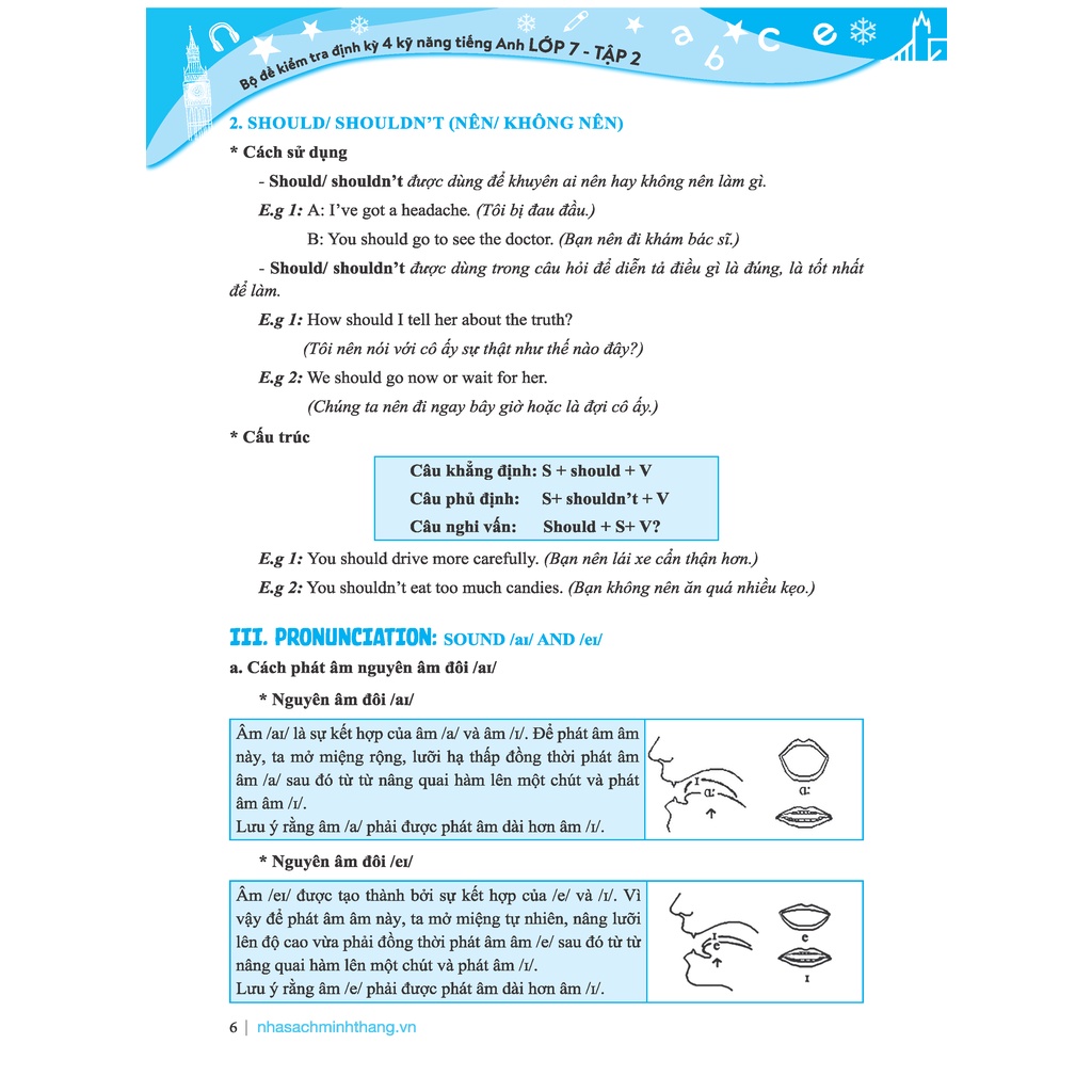 • Đề kiểm tra cuối học kỳ (kiểm tra kiến thức sau 6 đơn vị bài học)   Phần C: Đáp án Kết hợp với nội dung trong sách là link tải đĩa CD (đính kèm trên bìa sách) phát âm chuẩn tiếng Anh của người bản ngữ. Các em có thể sử dụng điện thoại smartphone để quét mã QR và tải các bài học một cách nhanh chóng và thuận tiện. Chúng tôi tin rằng, CD này sẽ hỗ trợ các em rất nhiều trong quá trình rèn luyện kỹ năng giao tiếp tiếng Anh của mình. Hy vọng bộ sách sẽ là một nguồn tài liệu hữu ích giúp các em rèn luyện và nâng cao điểm số của mình trong kỳ thi gần nhất! Trân trọng!