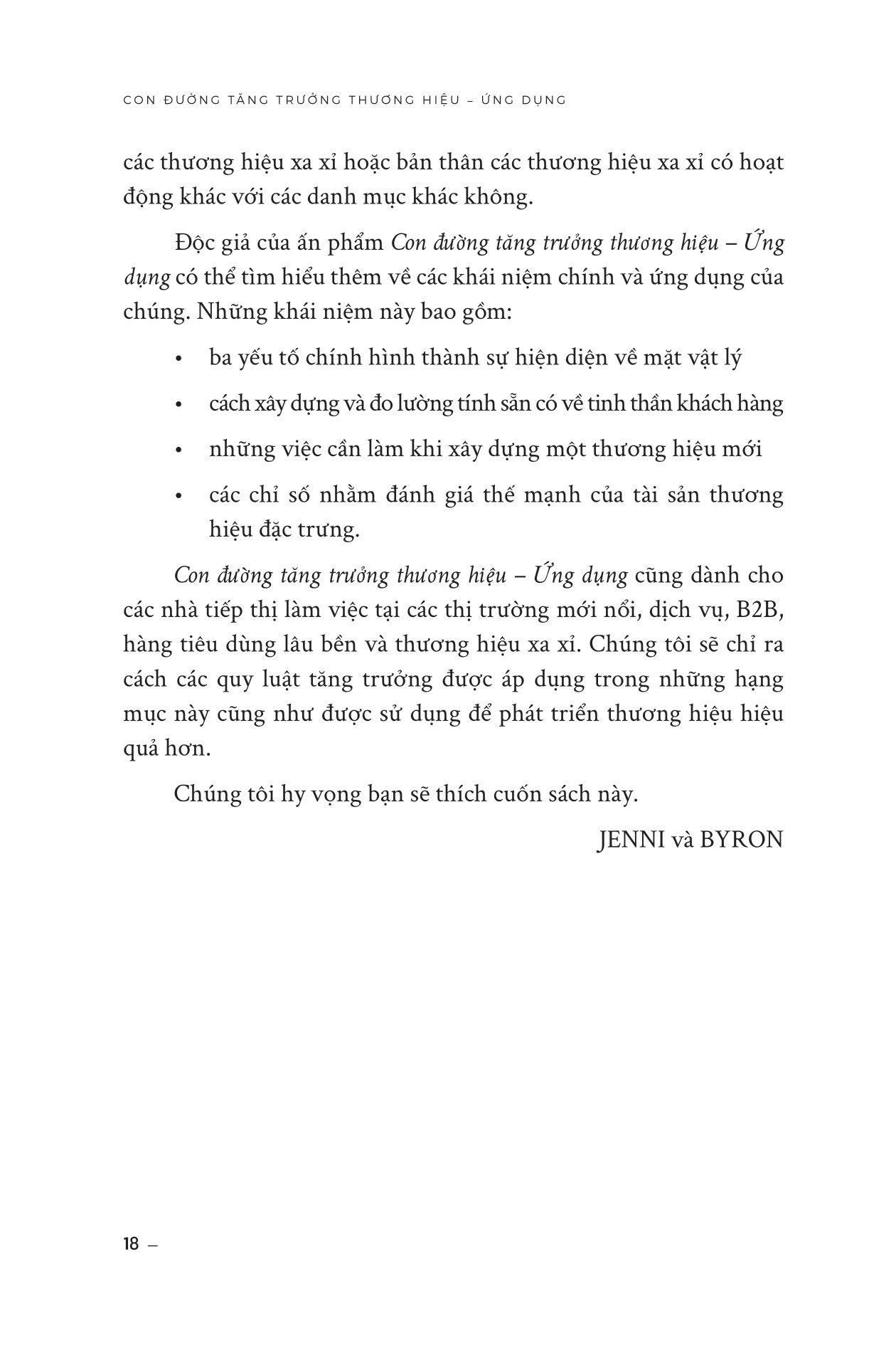 Cuối cùng, cuốn sách mang lại cho độc giả một cái nhìn toàn diện về tăng trưởng thương hiệu và doanh số bán hàng không chỉ trong các thị trường phát triển mà còn ở các thị trường mới nổi, dịch vụ, hàng tiêu dùng, B2B và thương hiệu sang trọng. Các độc giả sẽ học được cách phát triển chiến lược marketing hiệu quả và tăng trưởng doanh số bán hàng trong nhiều loại hình thị trường khác nhau.